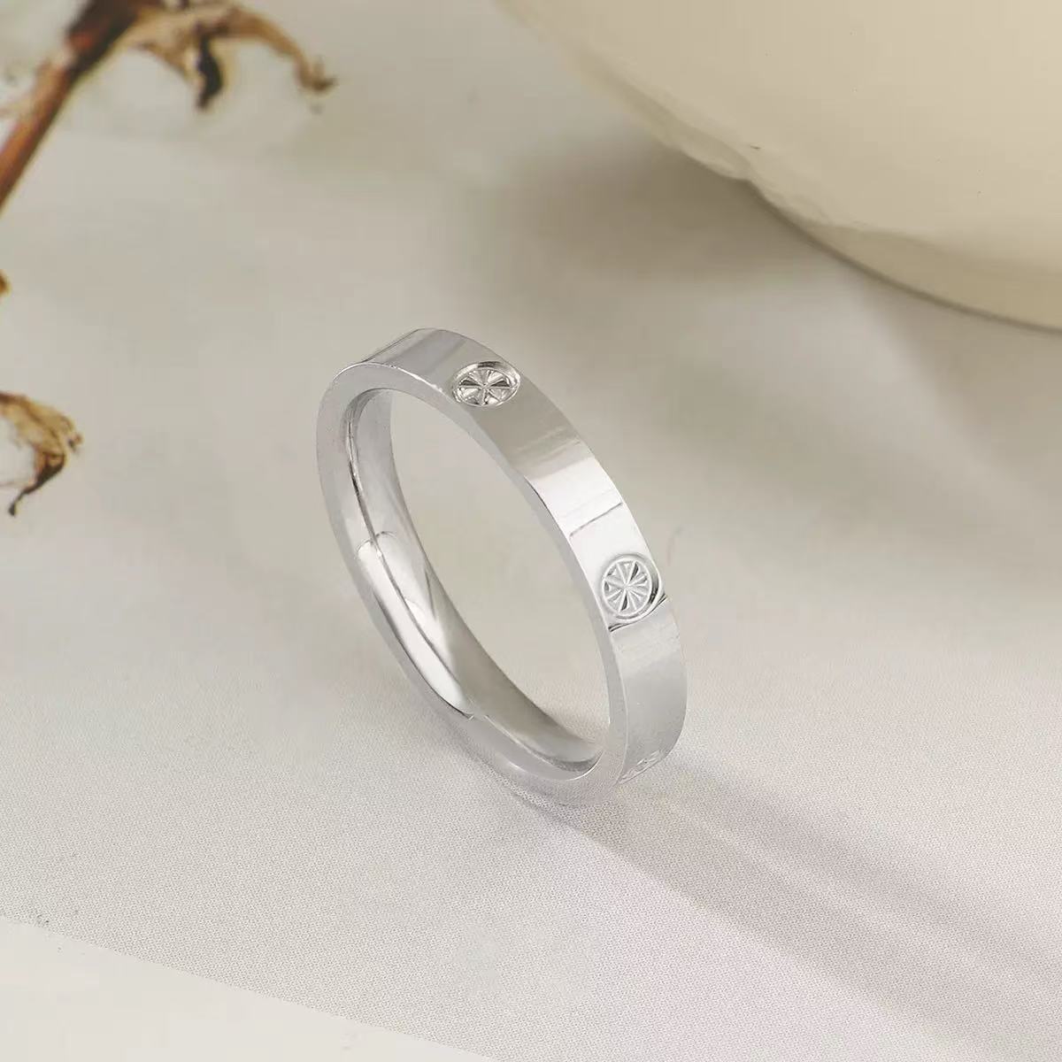 银誓 999新款金色素圈米字钻纹戒指不掉色小众设计情侣对戒送礼物