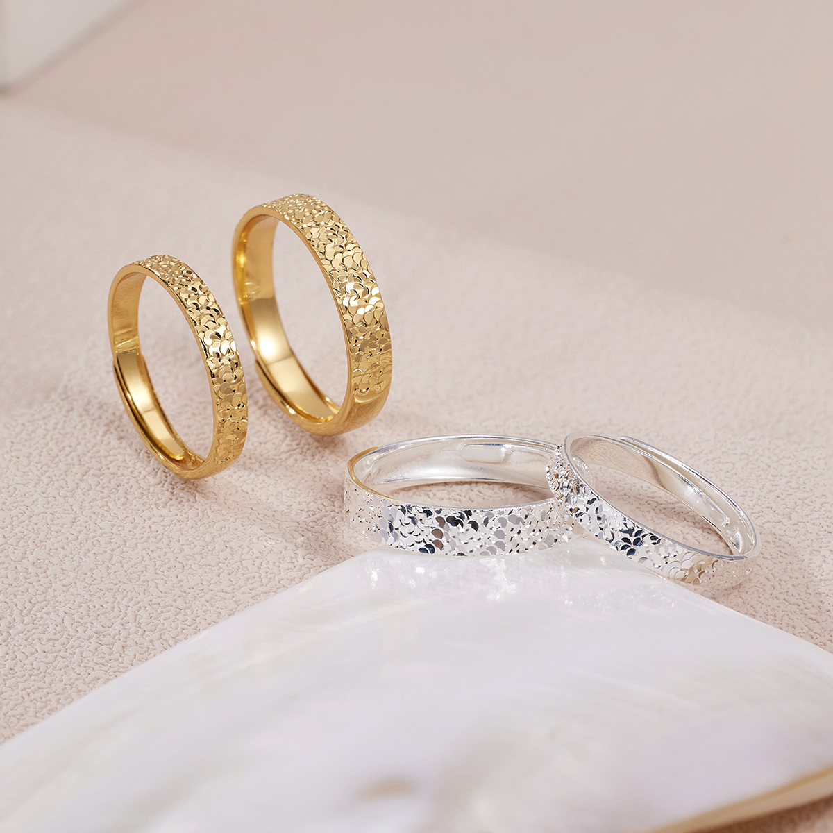 銀恋足銀999砕氷指輪女性ファッション軽贅沢ハンマーカップルペアリング高級感調節可能