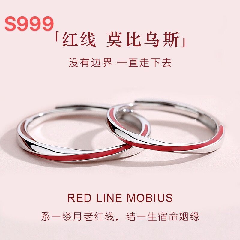 S999純銀の赤い線のモビウスのカップルの指輪のペアの記念の贈り物の大衆はバレンタインデーの贈り物を設計します。