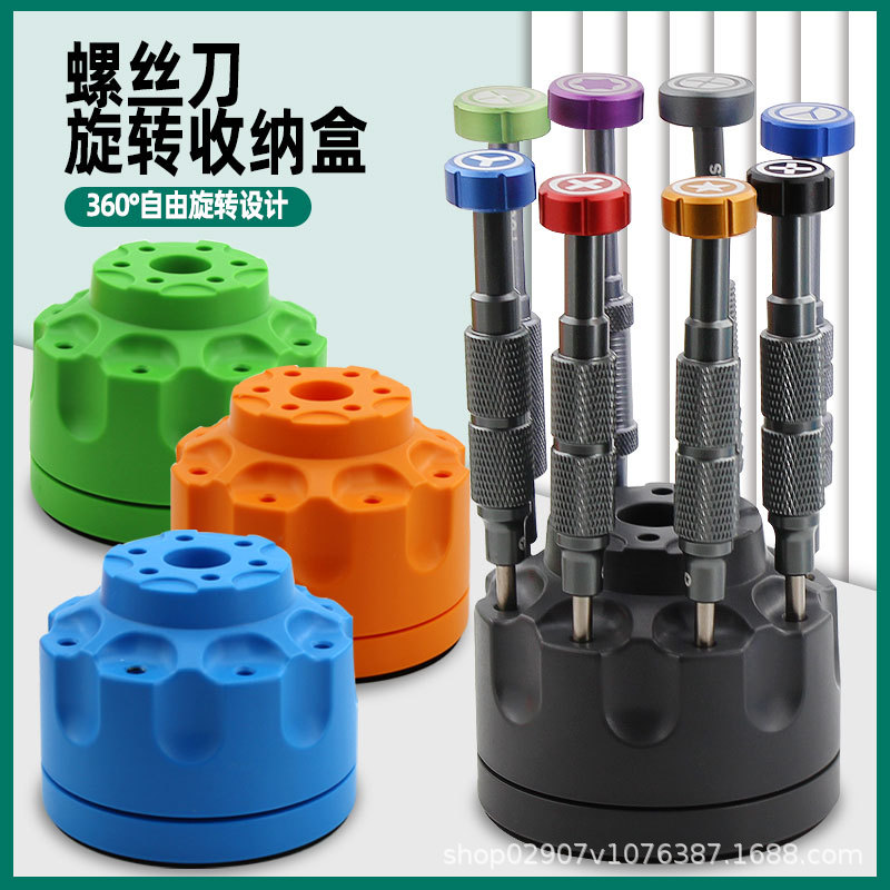 螺丝刀磁性旋转底座收纳盒 手机拆机维修加磁工具360%ABS架子14孔