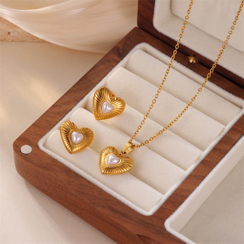 国境を越えた新しい愛ハート型真珠ステンレスピアスの高級感が落ちない18k金イヤリングネックレス卸売り