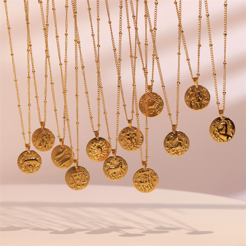 欧米の国境を越えて爆発した十二星座ステンレスのネックレスファッションは個性的な風潮チタン鋼ペンダント鎖