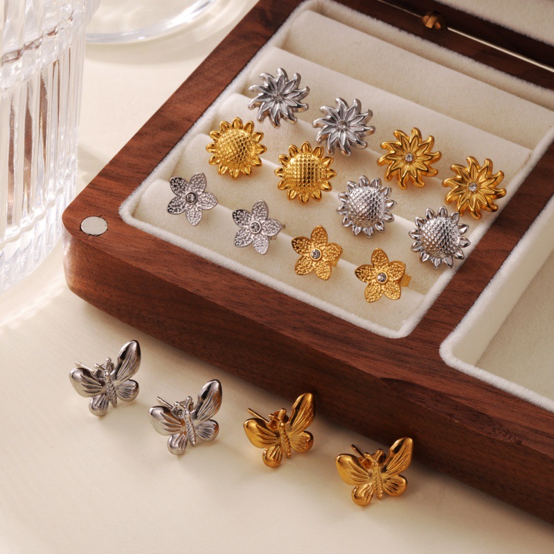 新型欧米INS風金色ステンレス花蝶シリーズピアス18kゴールドシンプル高級感イヤリング