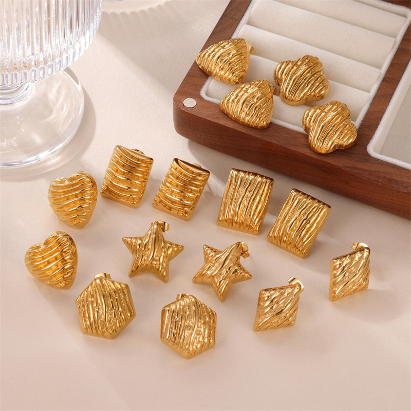 国境を越えた欧米の高級感しわ筋理ステンレスイヤリング女性シンプルファッション大衆デザイン感チタン鋼ピアス