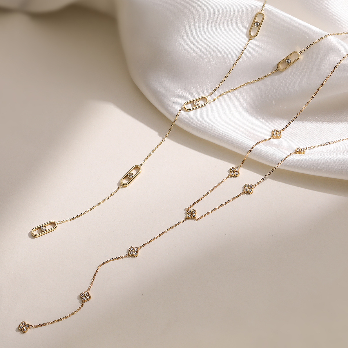 澳古 法式时尚优雅镀18K金镶锆石流苏项链女设计感小众百搭锁骨链