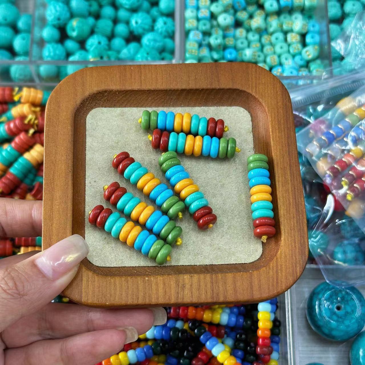 スペーサービーズ、ターコイズ、南紅瑪瑙、ラピスラズリ、ミャンマー産イエロー瑪瑙、合成スペーサー、文玩アクセサリー、DIYレインボースペーサー、卸売