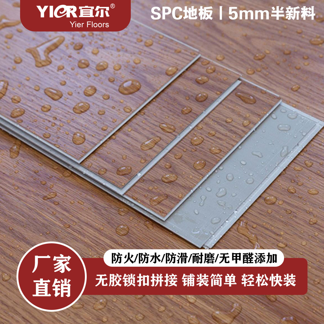 宜爾spc5 mm石塑性ロック床pvcカードボタン式石晶木床革耐摩耗防水メーカー卸売り