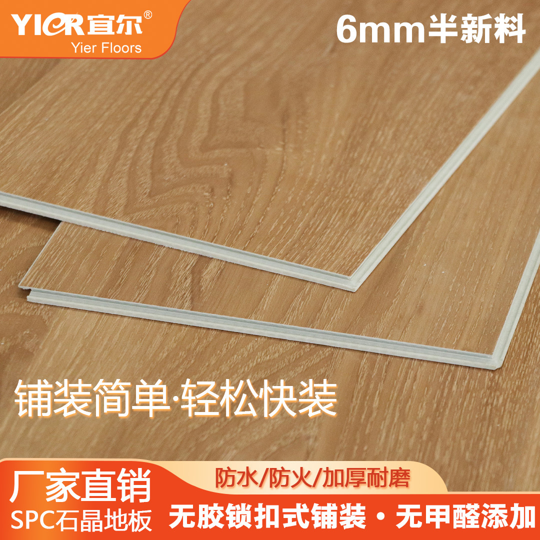 宜爾SPC6mm石塑性ロック床pvcカードボタン式石晶木床革耐摩耗防水メーカー卸売り