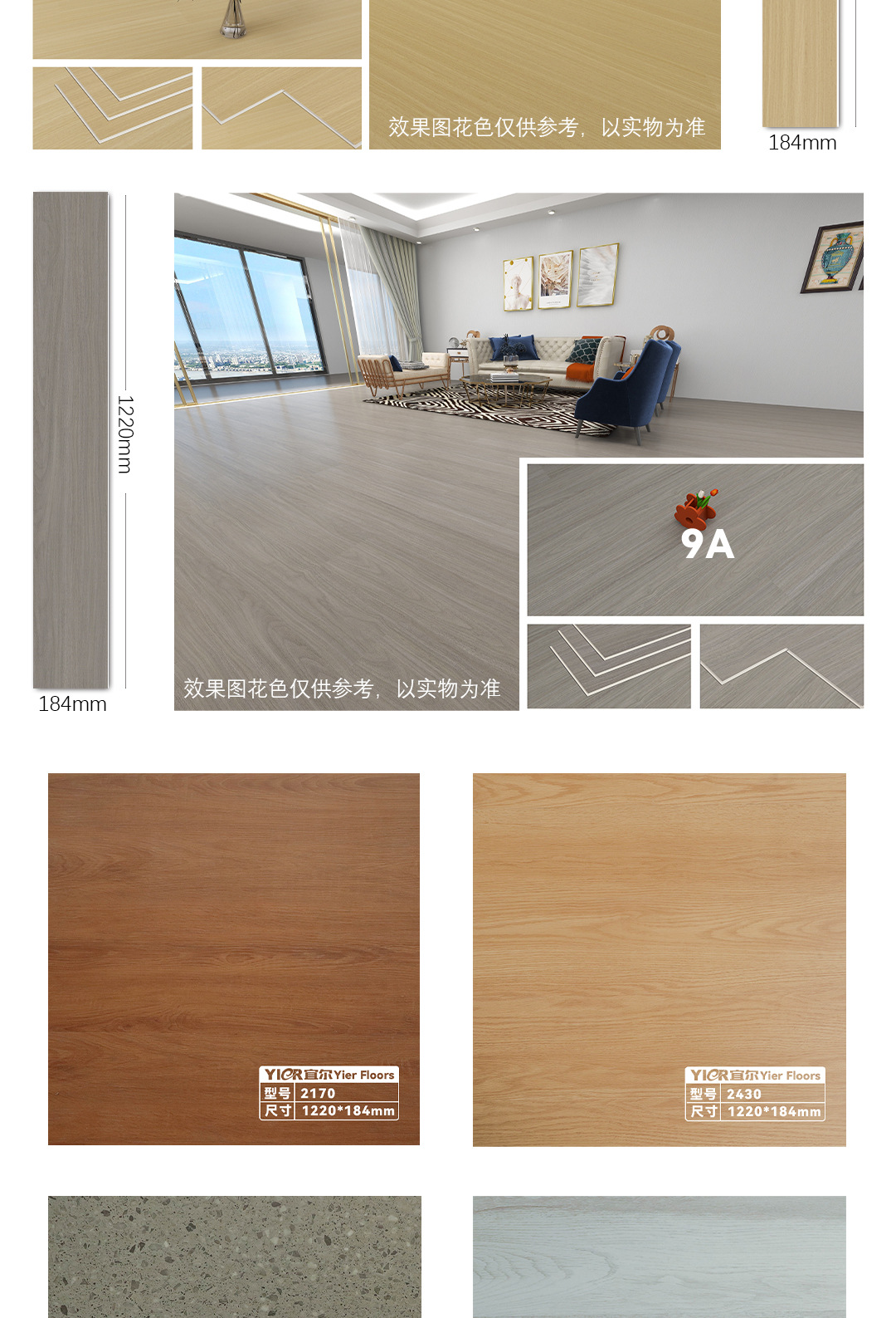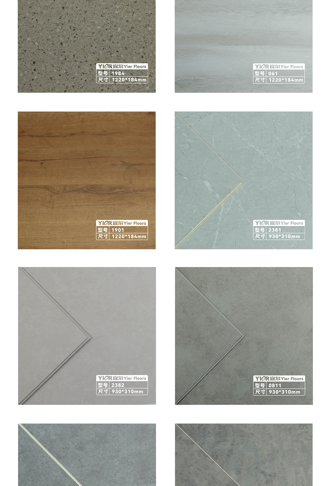宜爾6mm最新材料SPC石塑性ロック床pvcカードボタン式石晶木床防水メーカー卸売り