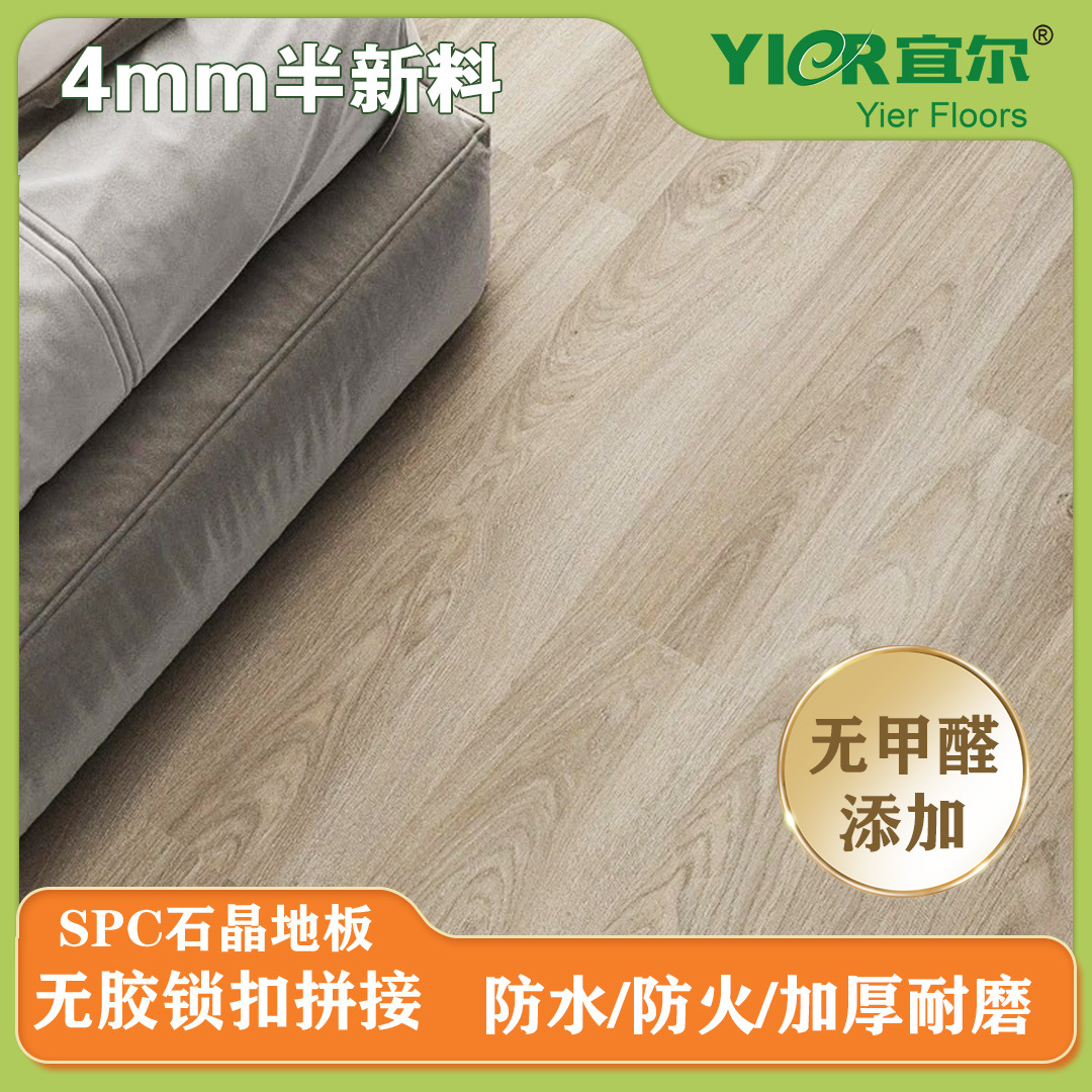 宜爾4mm最新材料SPC石塑性ロック床pvcカードボタン式石晶木床防水メーカー卸売り