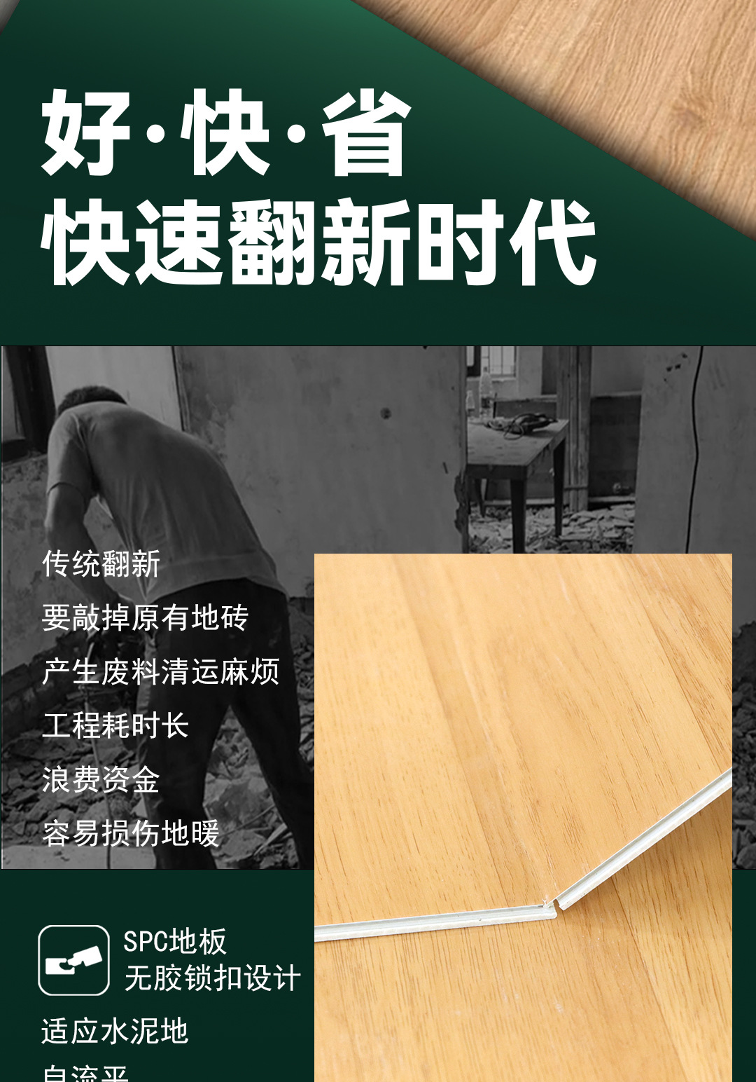 4mm新素材SPC石塑ロックフロア、PVCカムロック式、ホテル改修工事、外貿工場卸売
