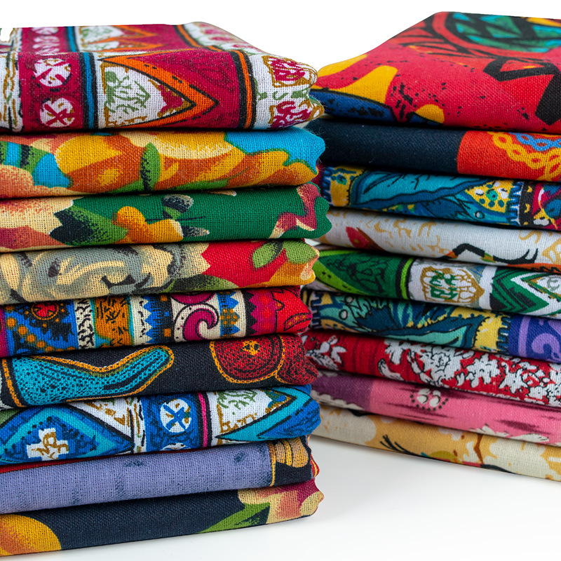 中国民族風プリント綿麻生地ボヘミアンテーブルクロスカーテンバッグ靴材リネン生地