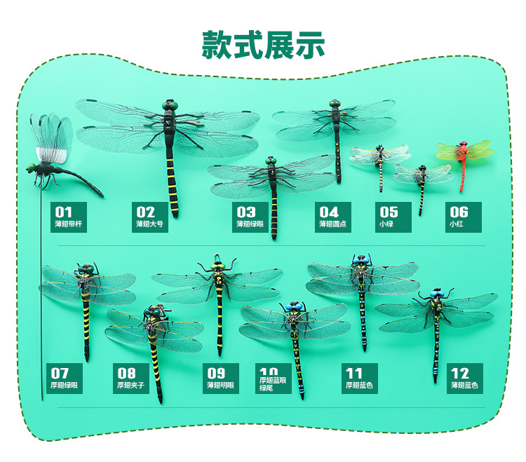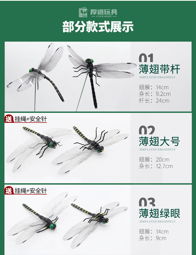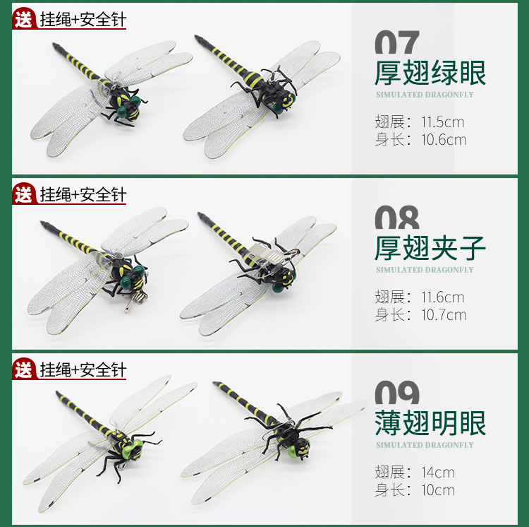 跨境仿真彩色蜻蜓户外驱蚊虫模型磁性带杆大号儿童玩具挂饰日本出