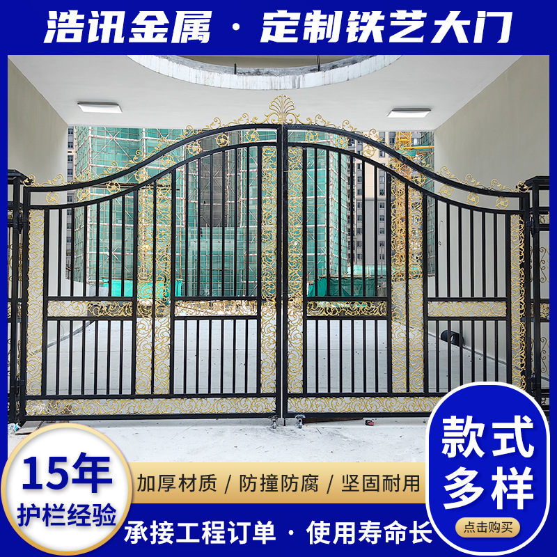 住宅区のビルのヨーロッパ式の豪華な玄関の別荘の庭の金属の彫刻の花のダブルドアの家庭用田舎の鉄芸の玄関