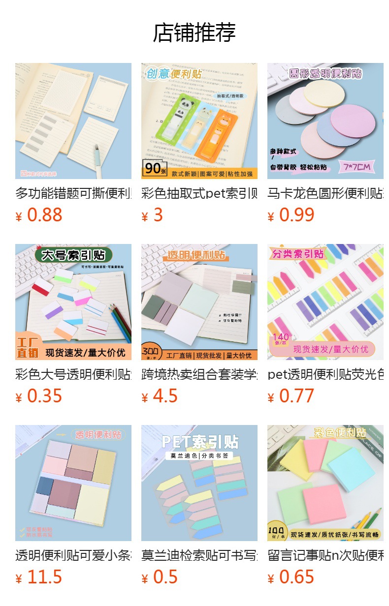 PETカラーノートポストイット カスタム 学生向け クリエイティブ指示マークステッカー インデックスステッカー キャンディーカラー メモ用紙