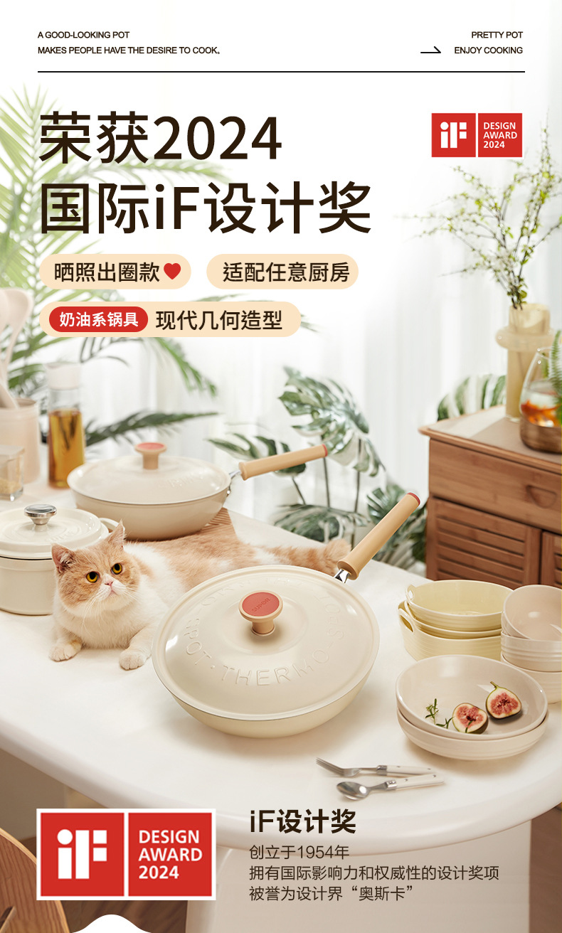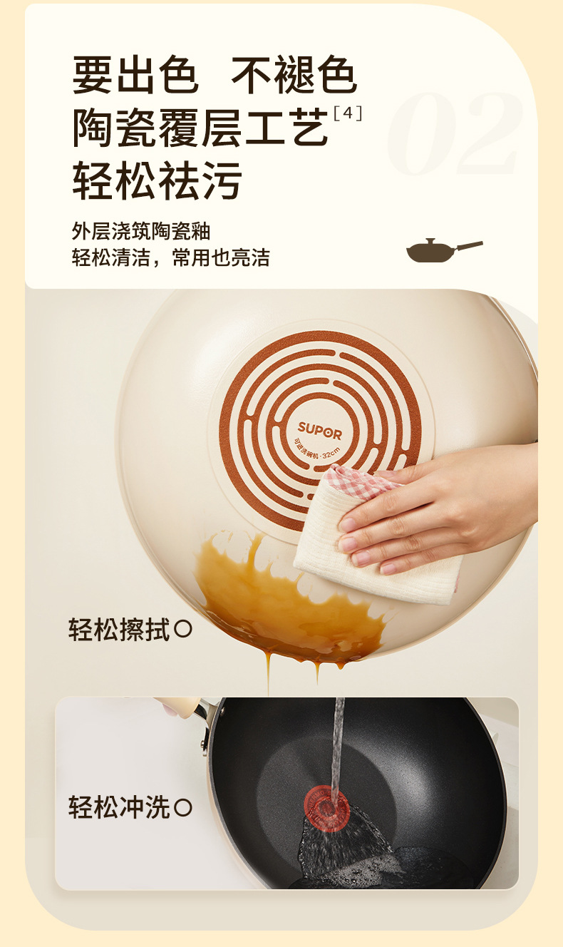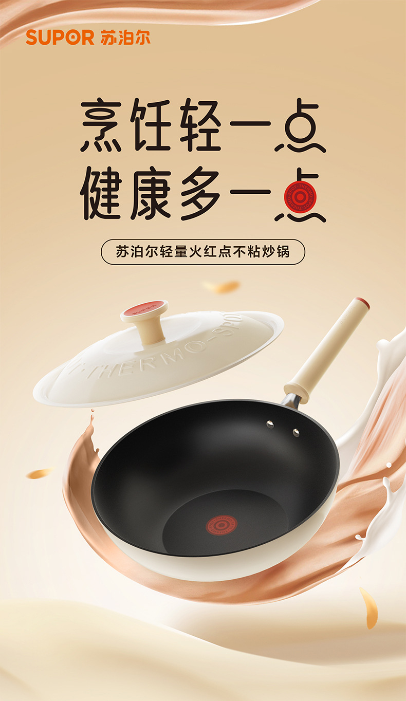 蘇泊爾 (supor) チタン研削力シリーズ火赤点無粘着鍋炒め鍋nc 34wa3 34cm