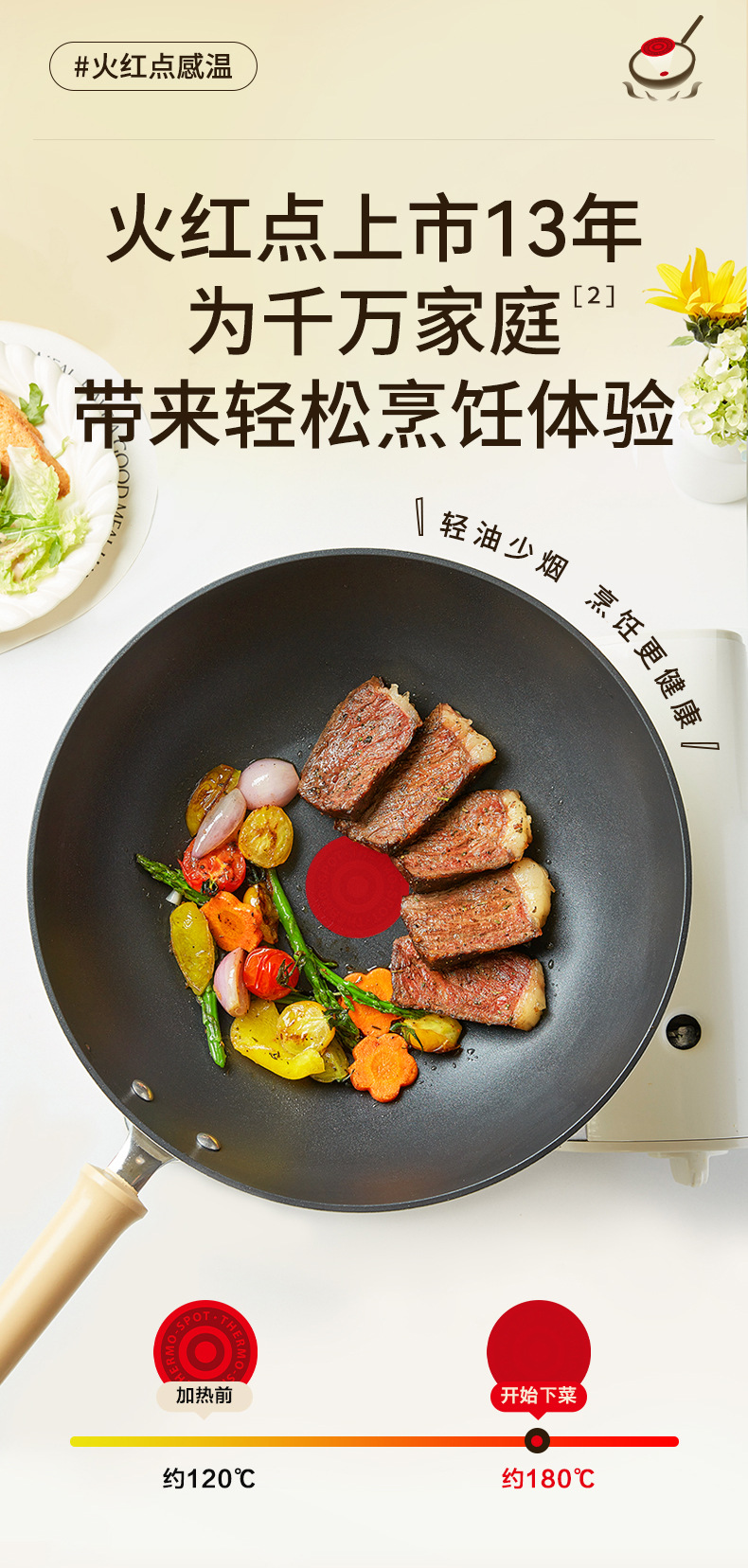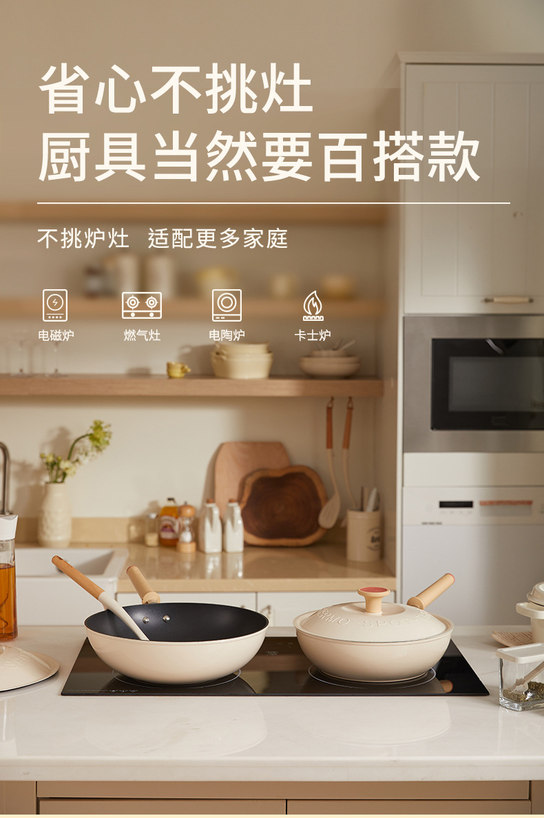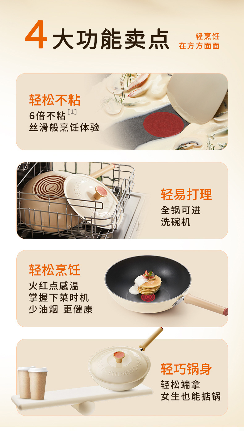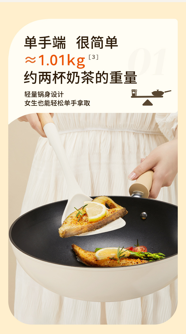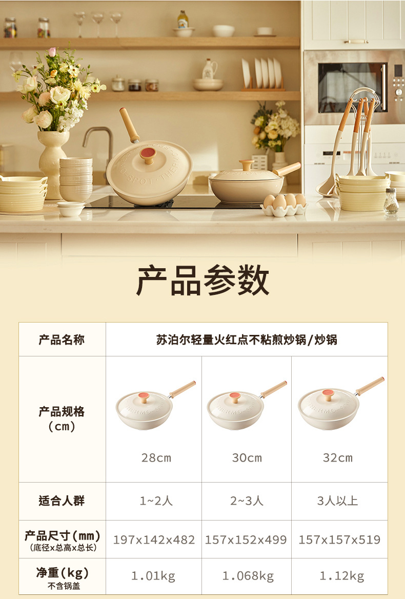 蘇泊爾炒め鍋の軽量火紅点は鍋にくっつかないフライパンの家庭用炒め鍋は油煙のない電磁ストーブをつけないで通用します。