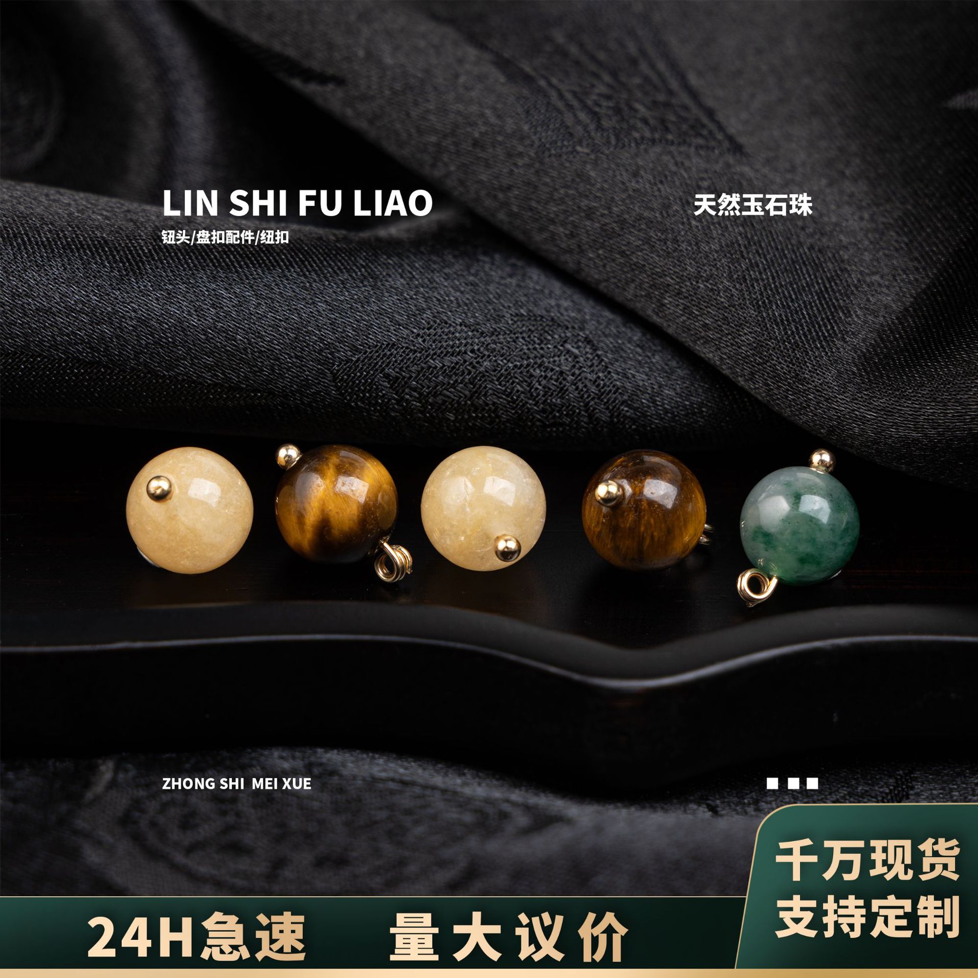 新中式旗袍纽扣天然玉石珠子虎石圆珠唐装汉服国潮中式服装