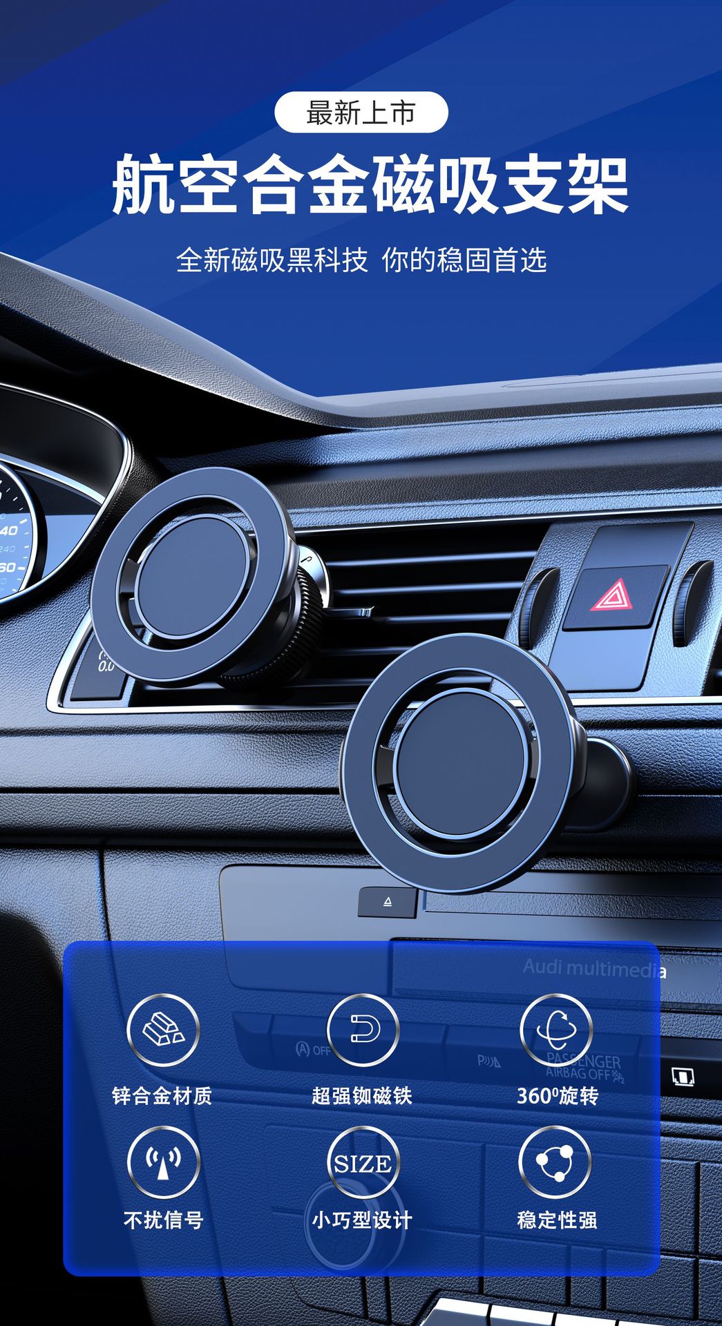 【产品名称】:磁性车载手机支架{出风口}