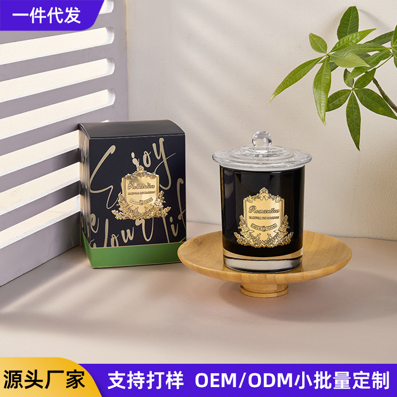フランスのロマンチックなバレンタインデーの小さいプレゼントの寝室の客間のファッション的な黒い杯の金の標識の香薫のろうそくの装飾の置物の卸売り