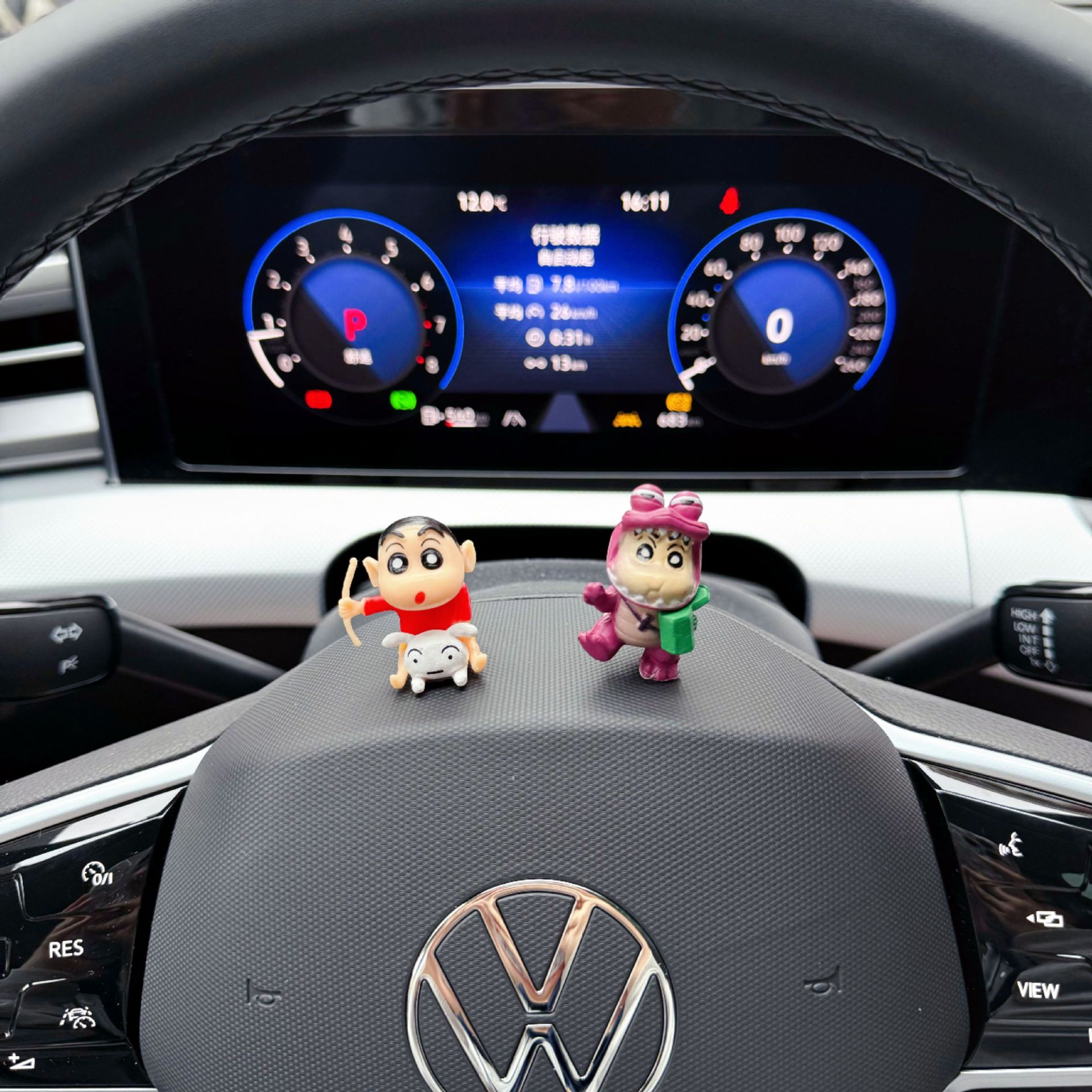 クレヨンしんちゃんの子供たちの立体的で可愛い車の車に乗ると、中控台の高級創意キャラクターの装飾品が飾られています。