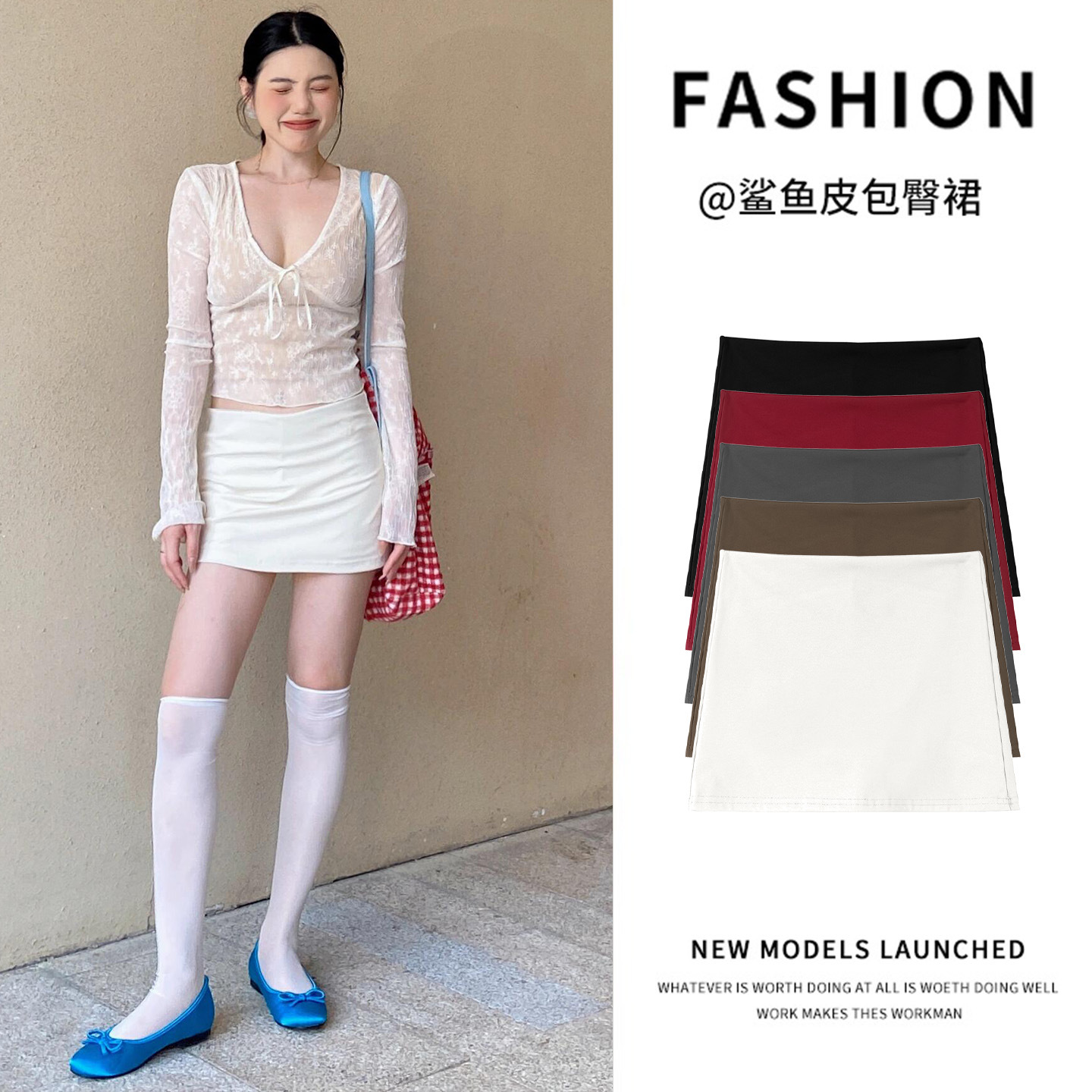 白色鲨鱼皮半身裙女夏季2025新款高腰显瘦a字短裙修身辣妹包臀裙