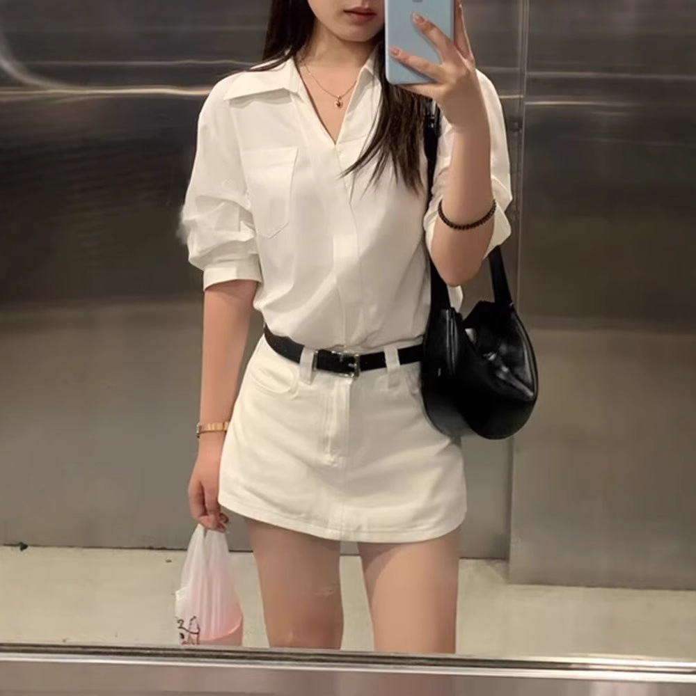 白色纯欲风半身裙女高腰显瘦a字裙夏季新款百搭防走光包臀短裙子