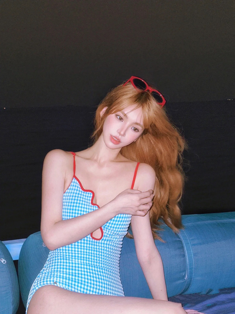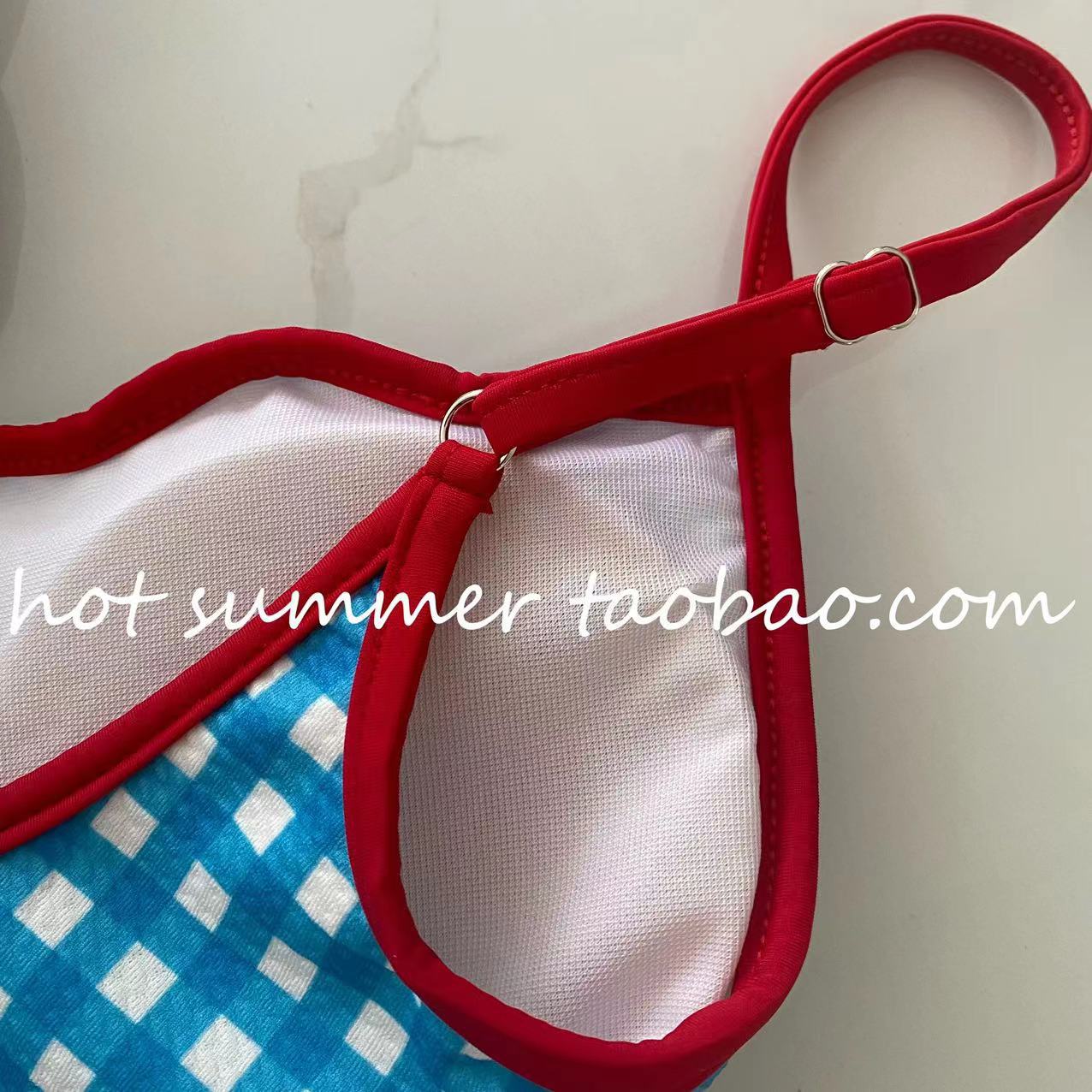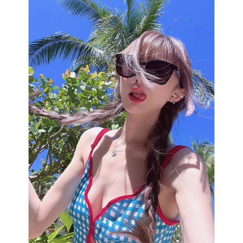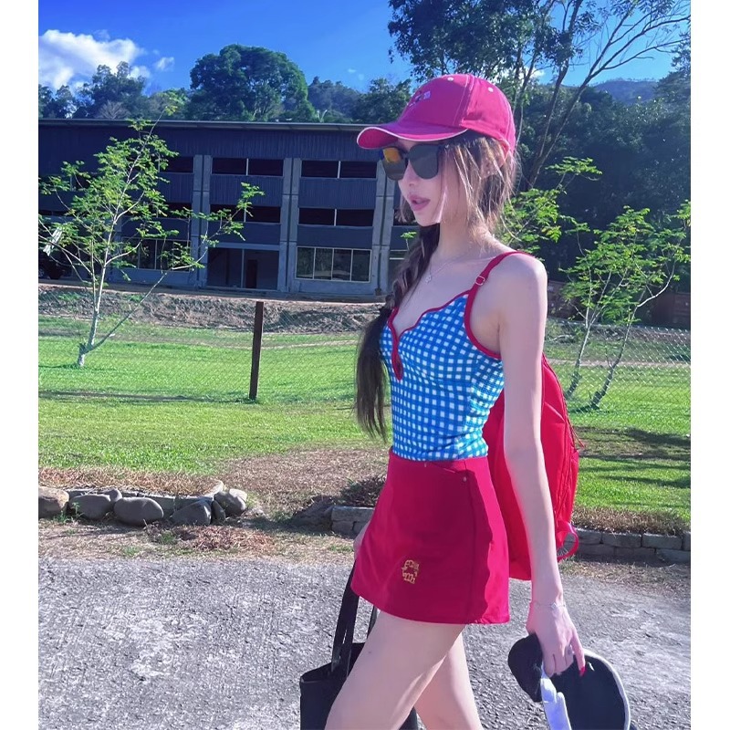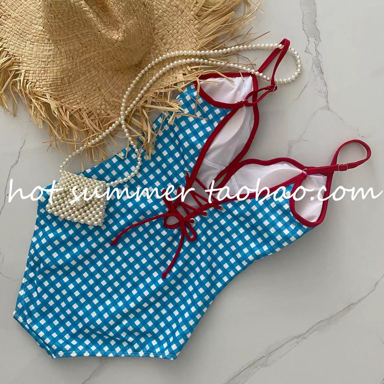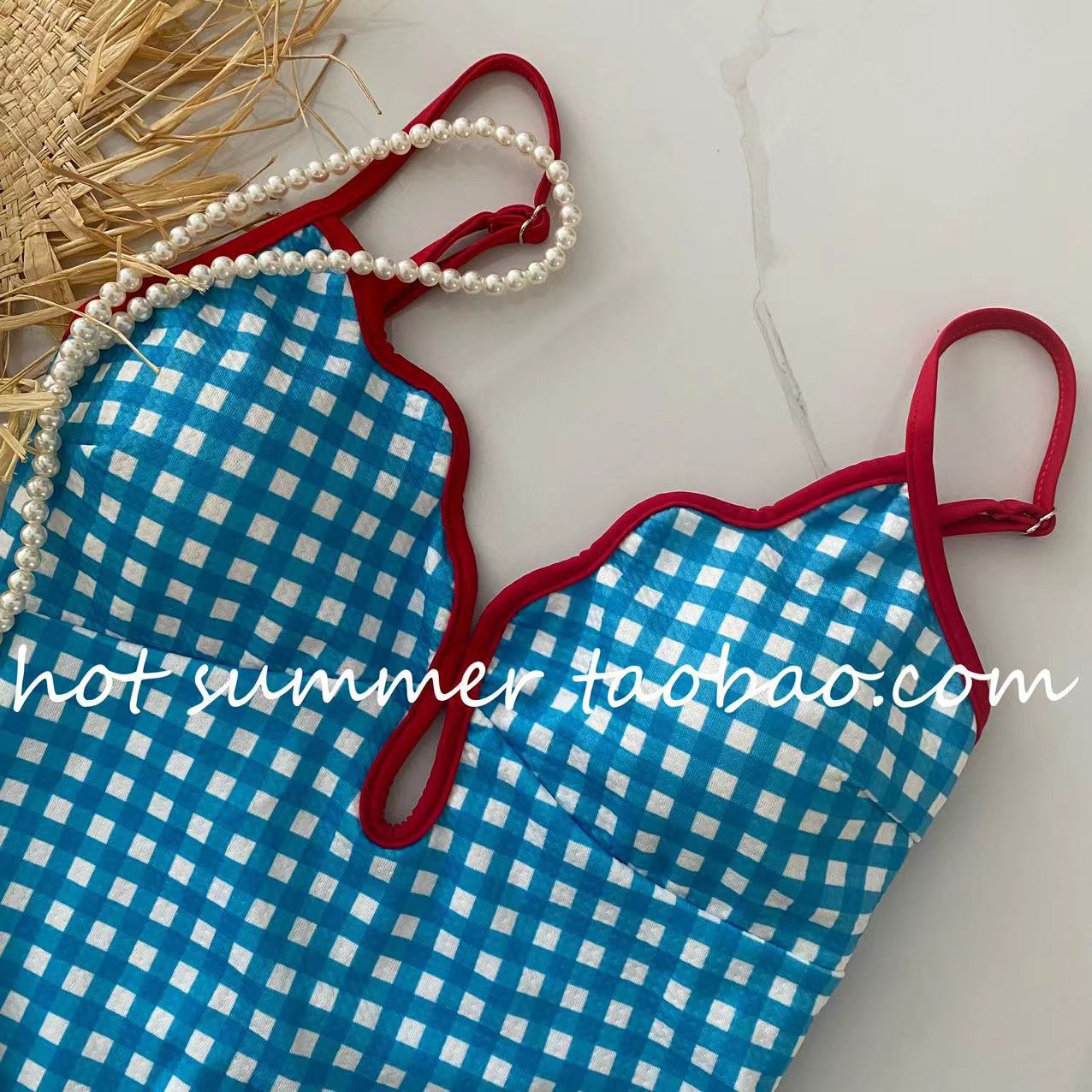 2025 新チェック柄スリング口スリムビーチ温泉スポーツワンピース日焼け止め女性水着水着