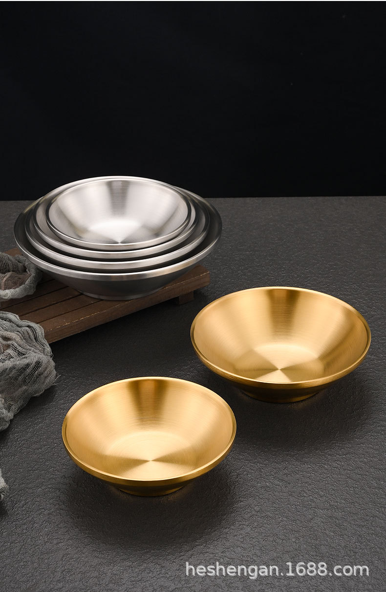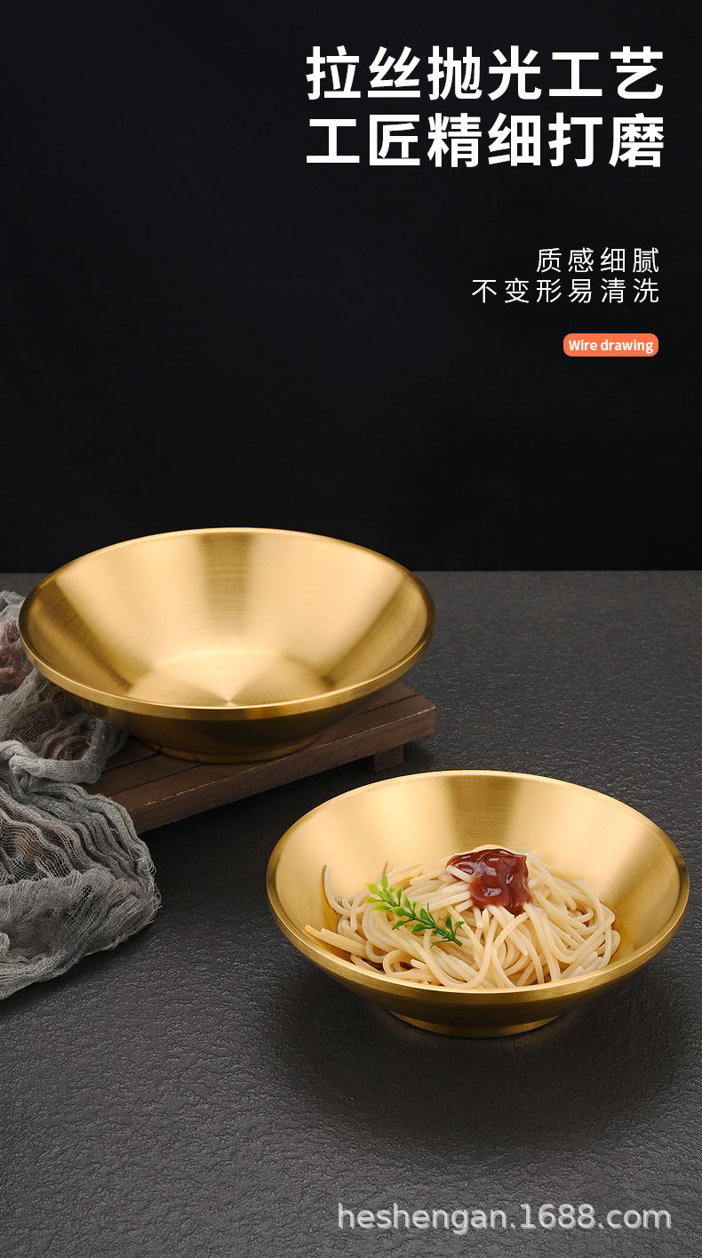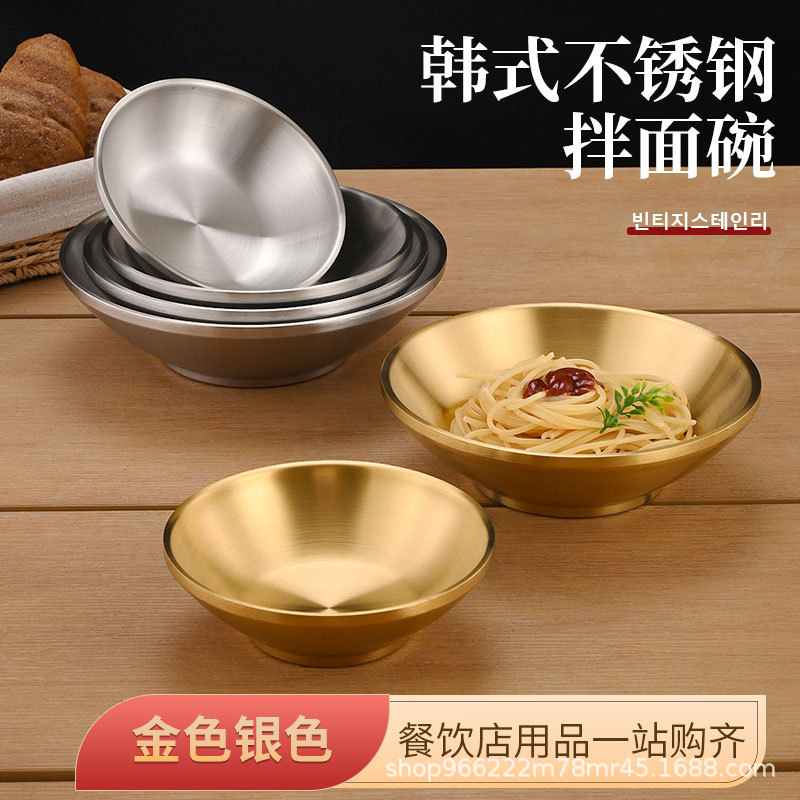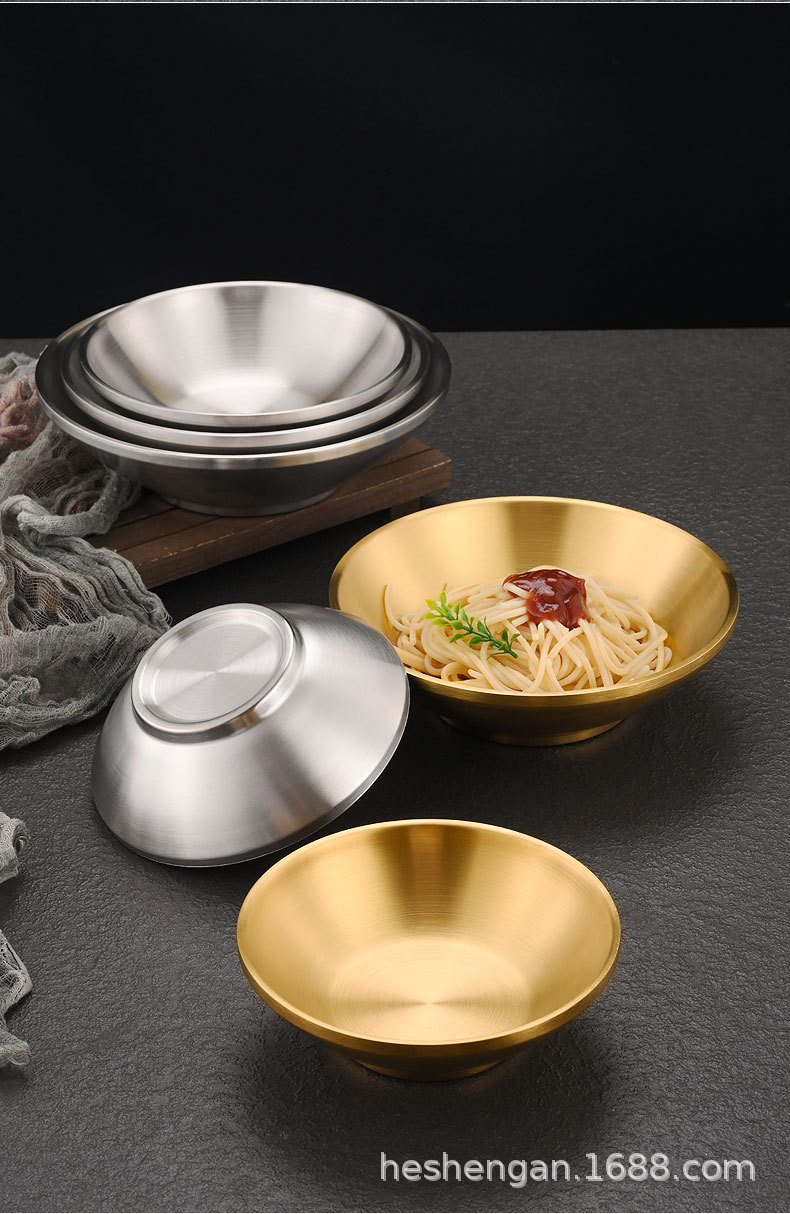 メーカー直販韓国式ステンレス冷麺碗商用金色二層練麺練飯碗ナット粉斗笠碗
