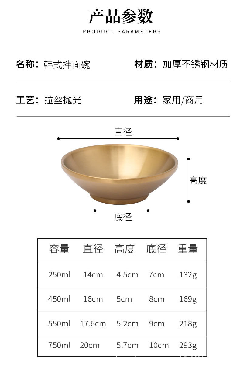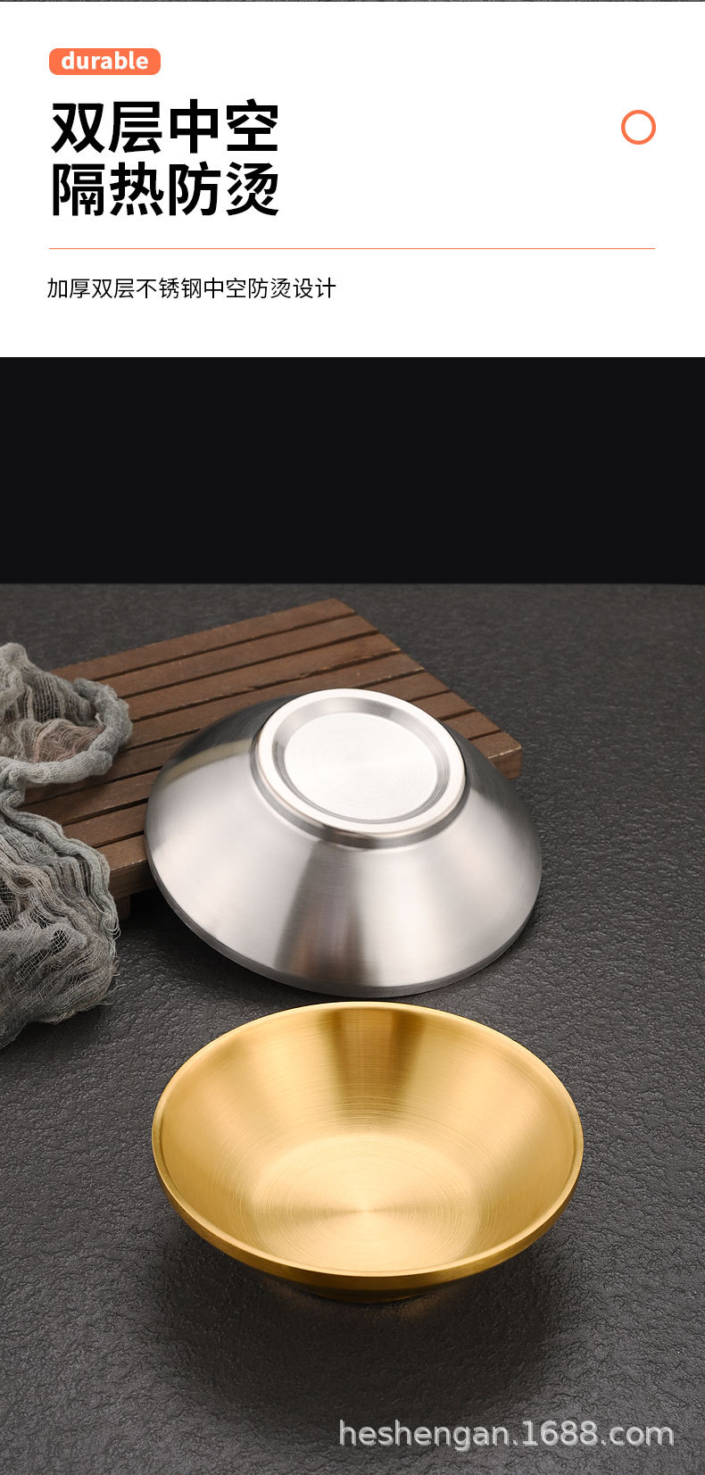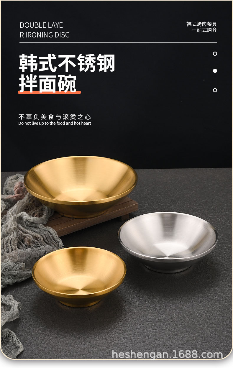 メーカー直販韓国式ステンレス冷麺碗商用金色二層練麺練飯碗ナット粉斗笠碗
