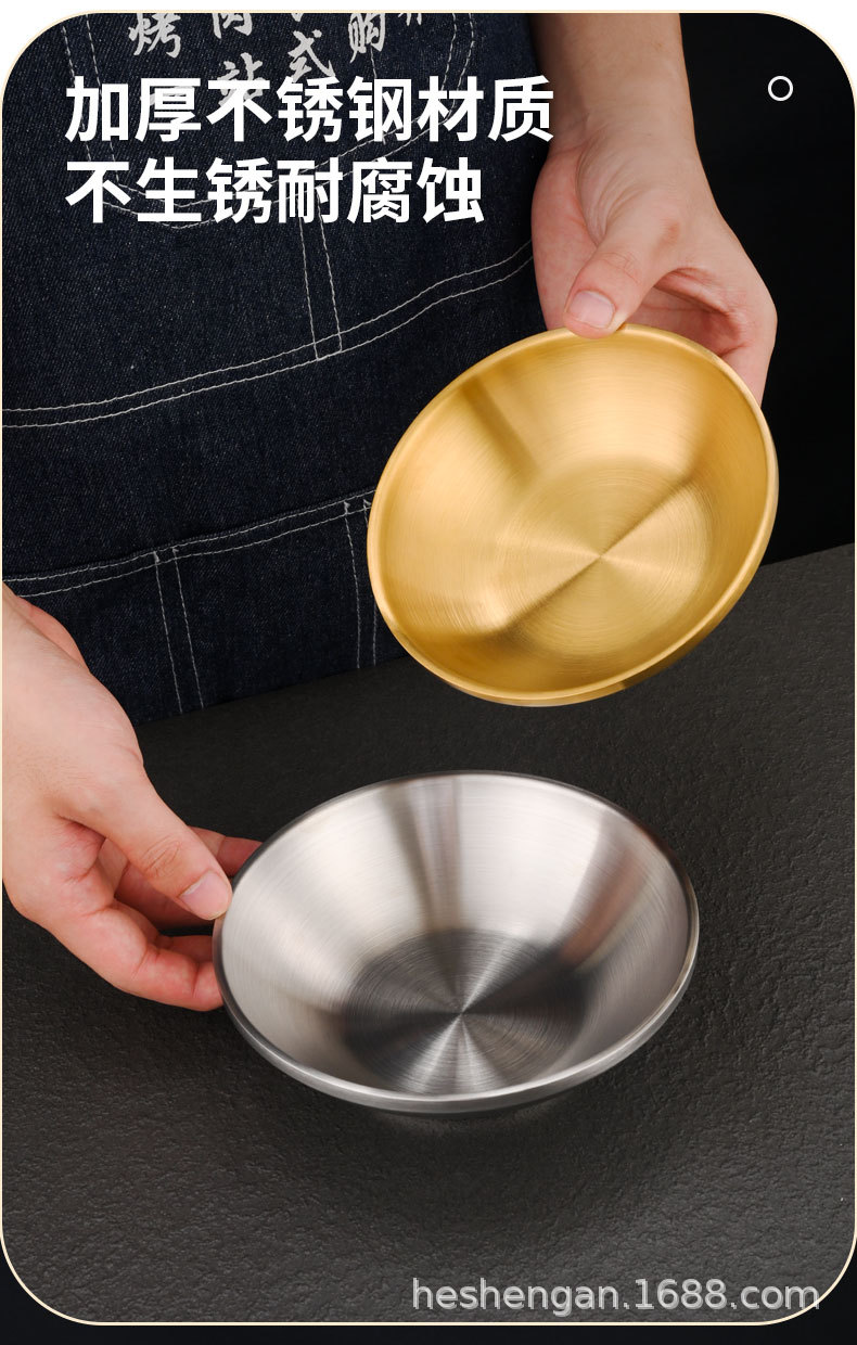 韓国式304ステンレスソース皿おかず皿韓国金色キムチ皿焼肉ソース皿調味皿食器