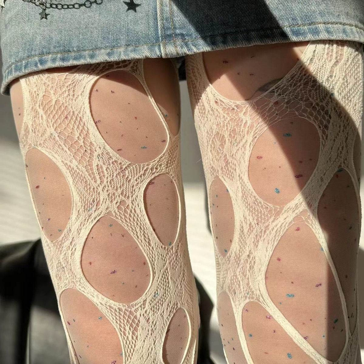 2024春夏の新商品の不規則な破れ穴の個性のパンクの漁網の靴下はクールで辛いです。