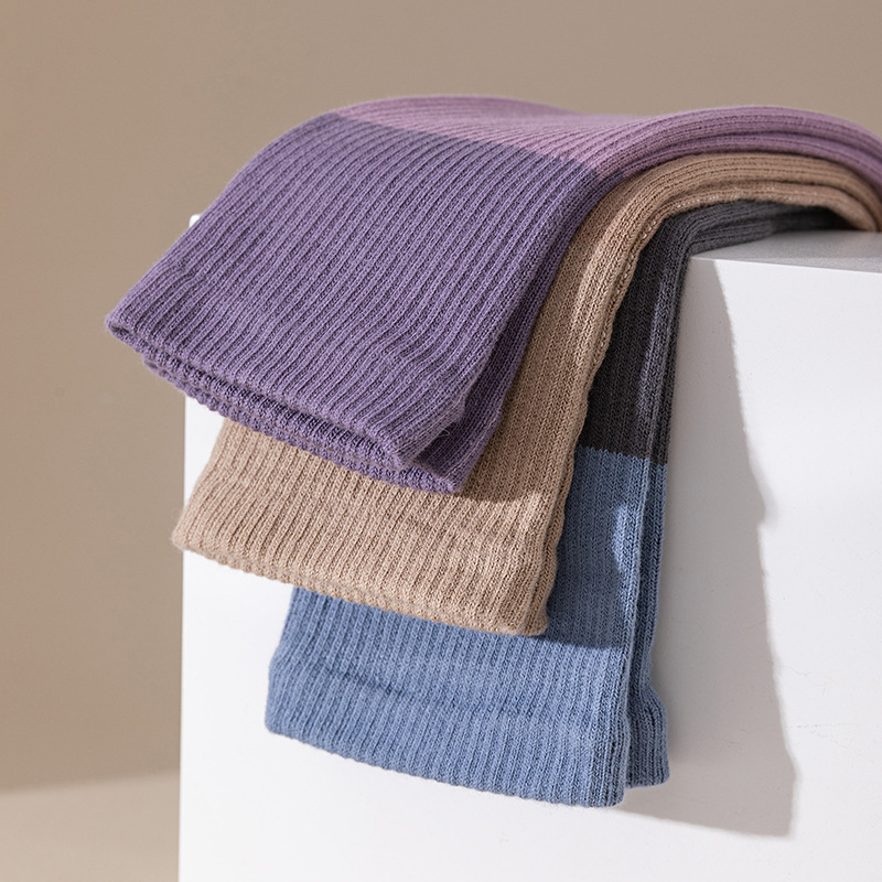 秋冬新品紫千鳥格子中筒靴下日系学院風双針双路復古韓国版綿靴下卸売り