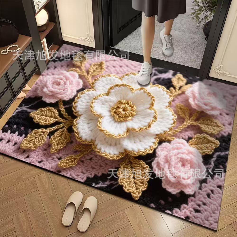 ライト高級ローズ吸水速乾フロアマット視覚的立体珪藻泥カーペット汚れ防止耐摩耗性フットマット滑り止めフロアマット