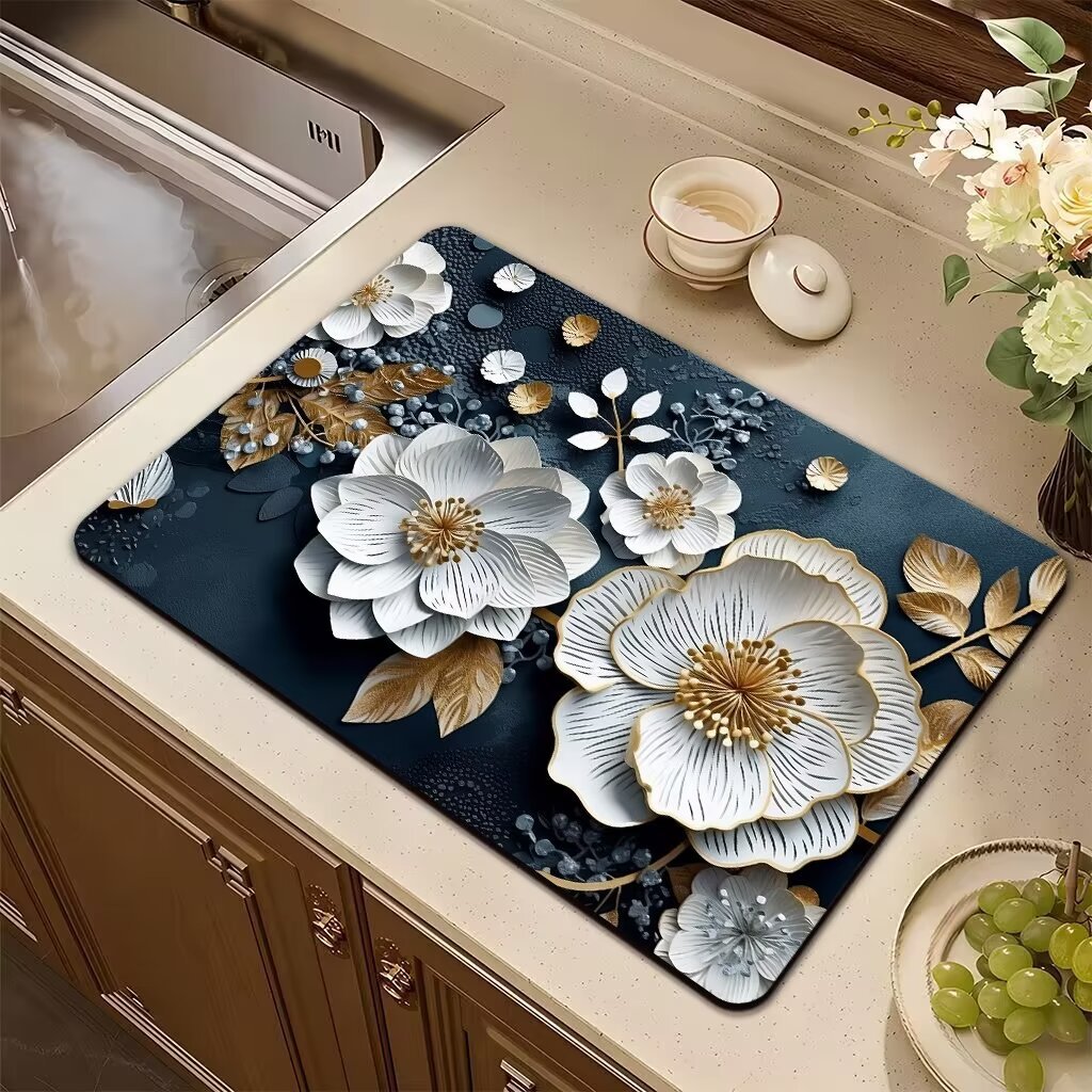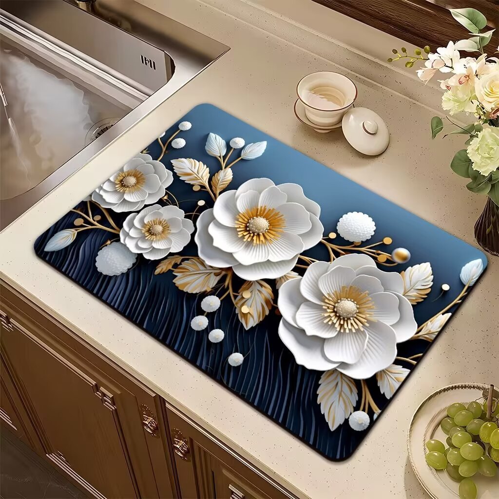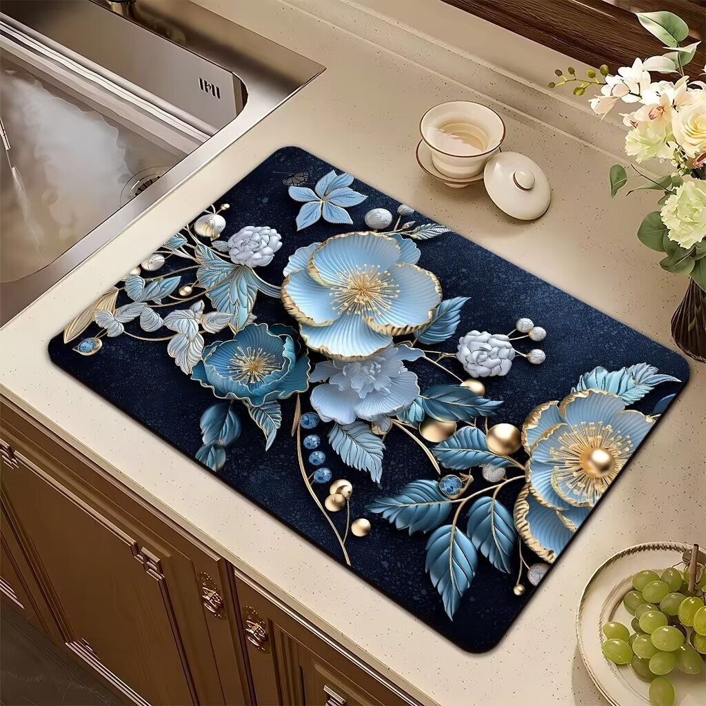 アメリカのレトロな花の台所のテーブルの水切りマット吸水速乾マット乾燥滑り止め珪藻泥断熱テーブルマット