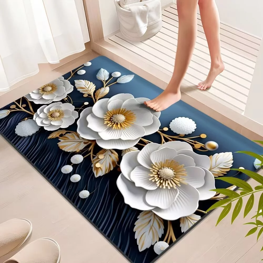 跨境3D花朵硅藻泥地垫吸水防滑浴室地垫耐脏耐磨家用厕所脚垫子