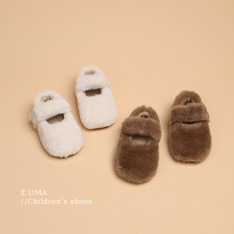 女童毛毛鞋2025新款外穿宝宝保暖豆豆鞋冬季儿童防滑软底加绒棉鞋