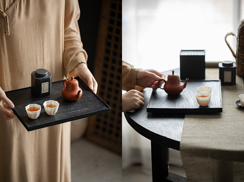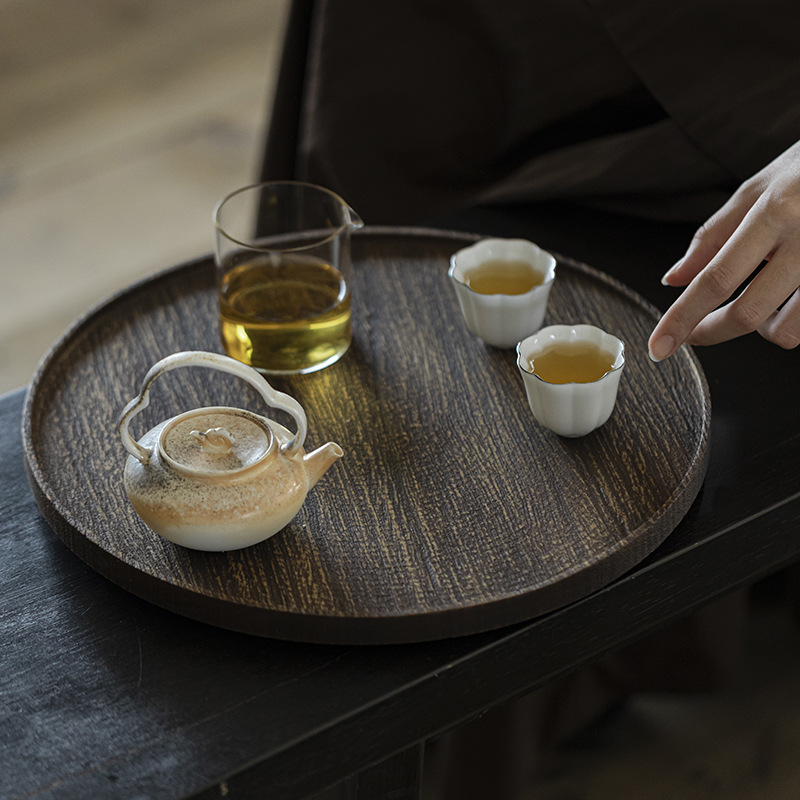 白蝋木炭焼壺承茶トレー長方形乾泡茶台小茶盤寂原木盤家庭用