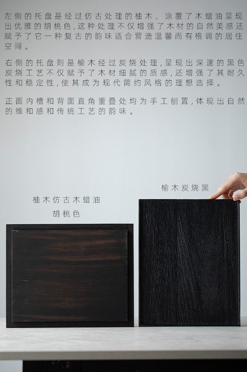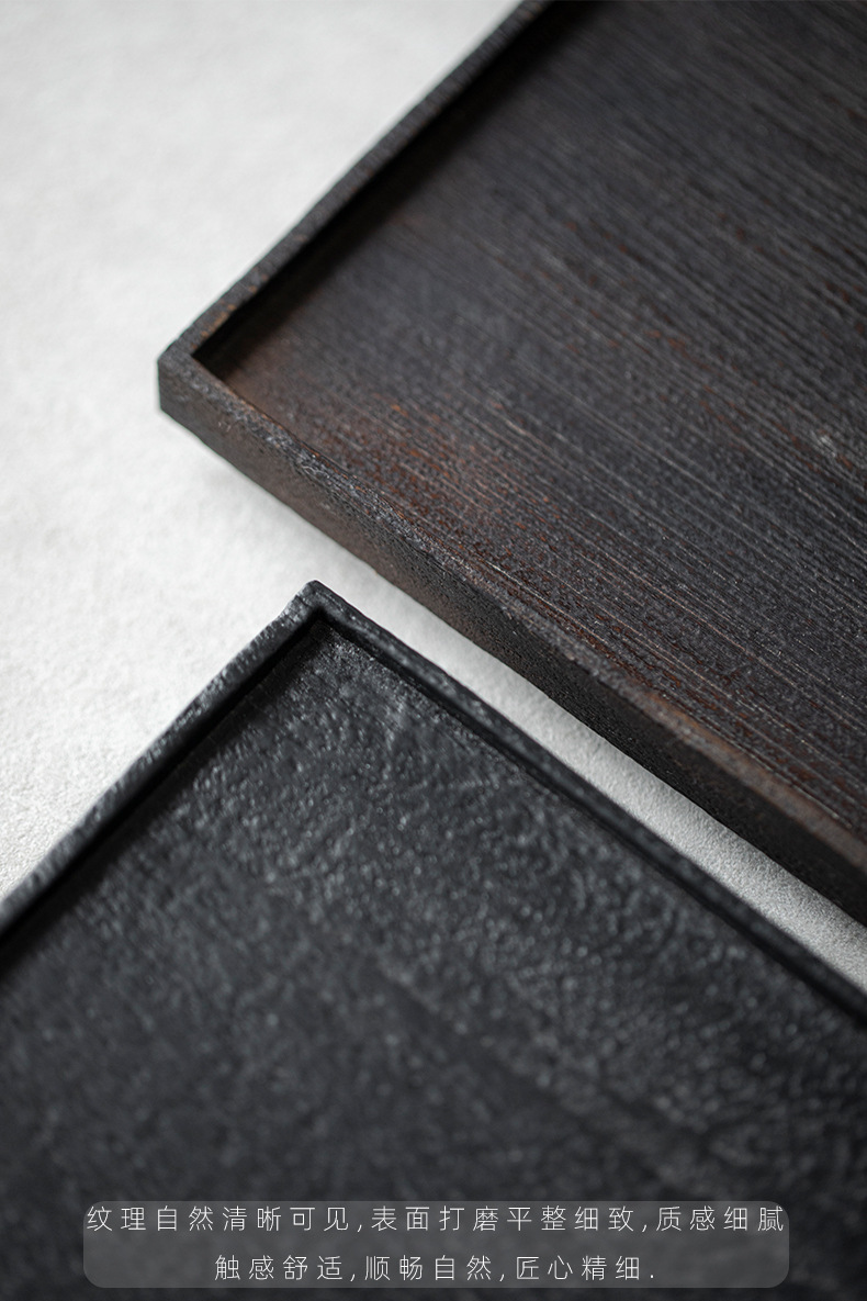 雨木 | 日本式黒胡桃長方形伸線紋理トレー整木茶皿皿実木手作りトレー