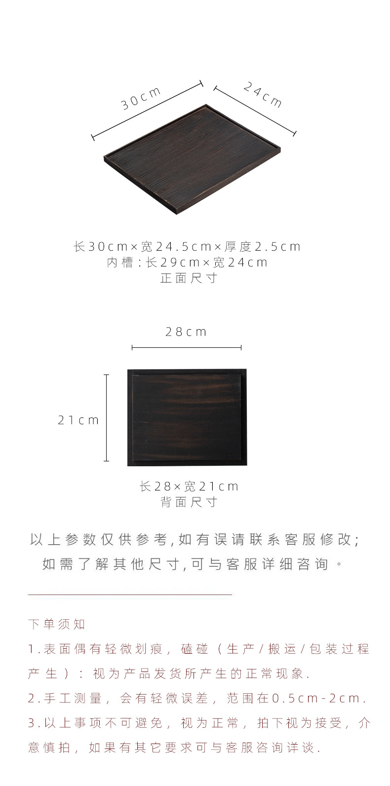 カラー 箱船トレイ-サンドブラスト胡桃色30*24,箱舟トレイ-炭焼き黒30*24