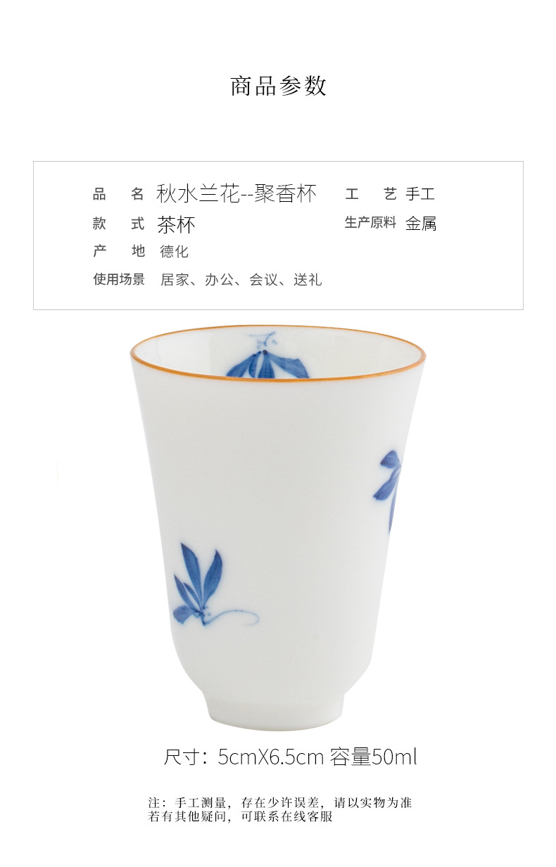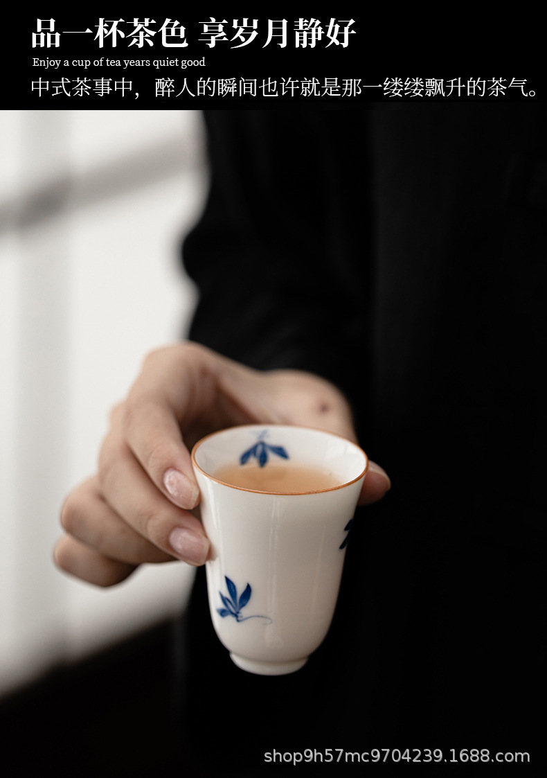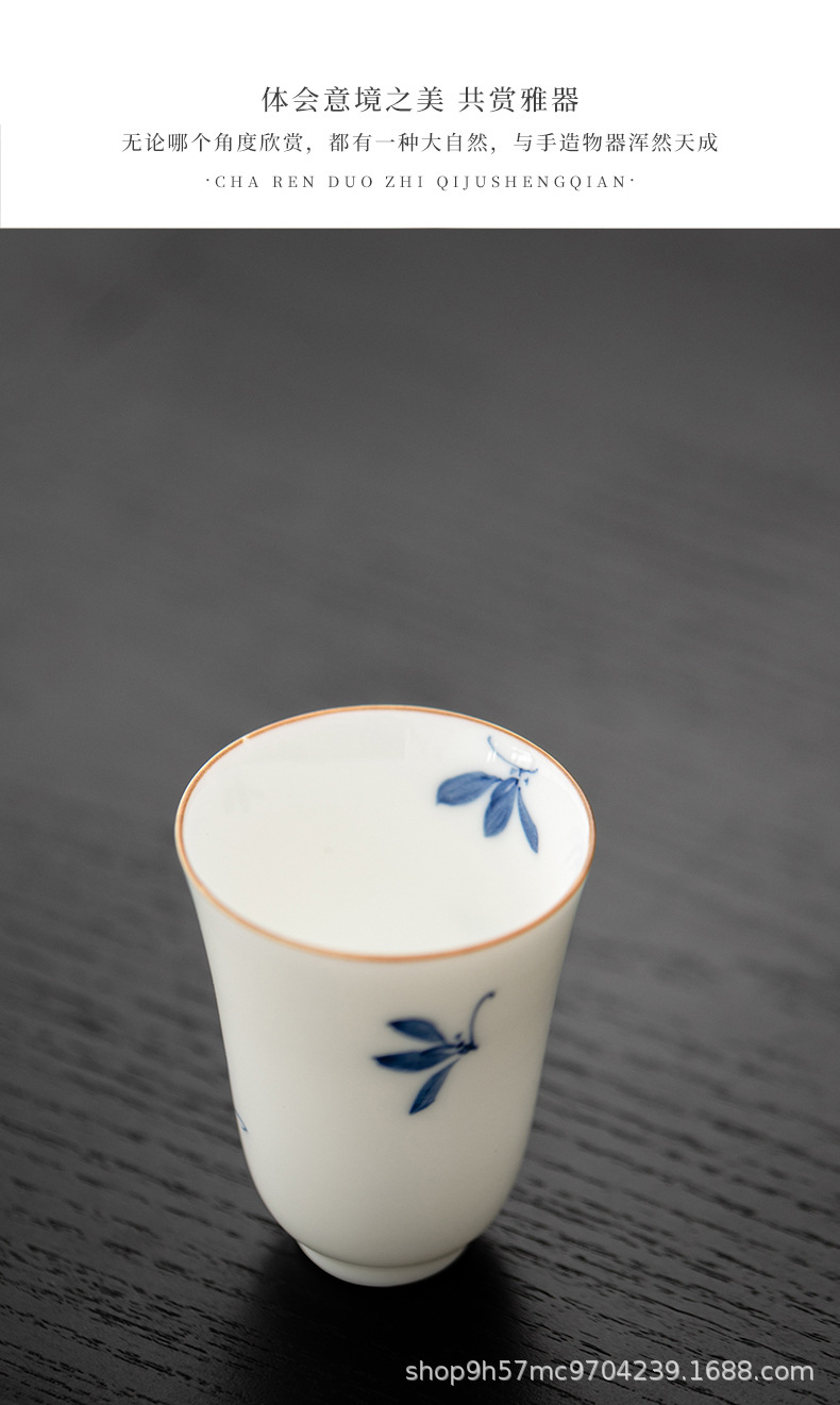 禧マグネシウム手描き蝶蘭白磁器品茗杯香りを聞いて香杯陶磁器を飲みます。