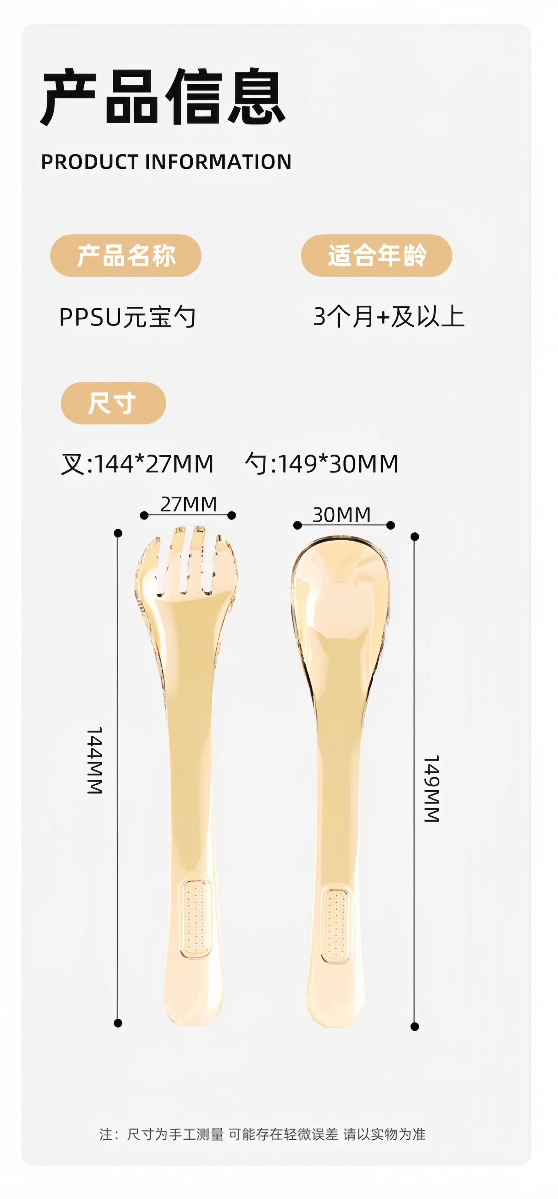 PPSU元宝训练勺婴儿防滑叉勺6M+自主进食学吃饭餐具厂批源头