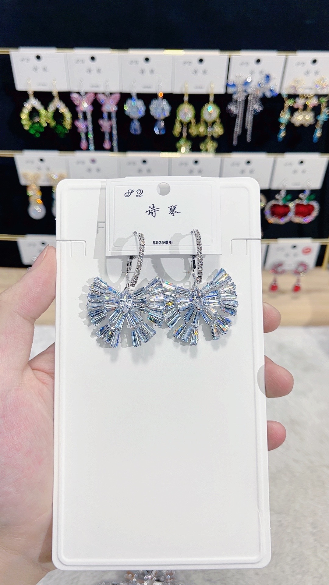 ファッショントレンドジルコン贅沢ネックレスイヤリング小桃心セットins生放送起爆着スカート着用