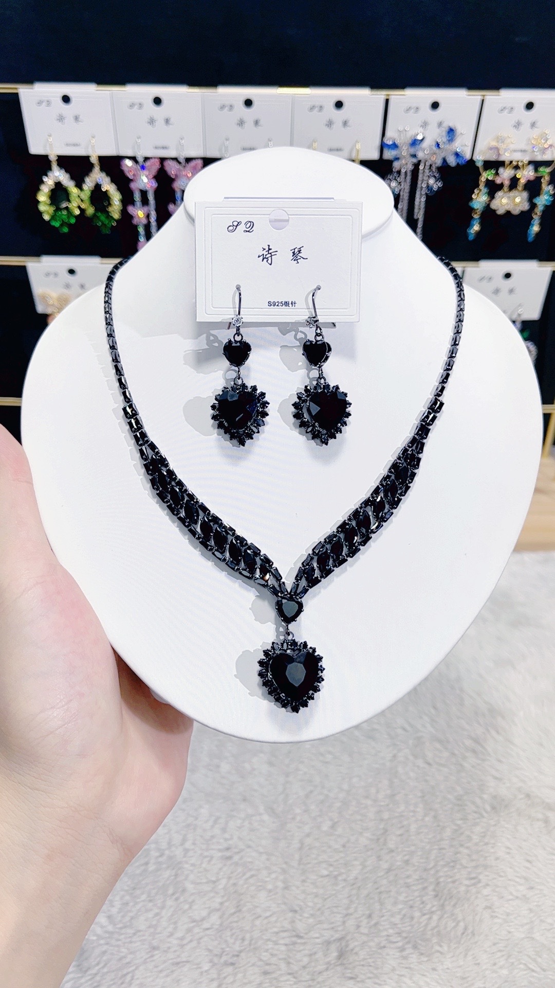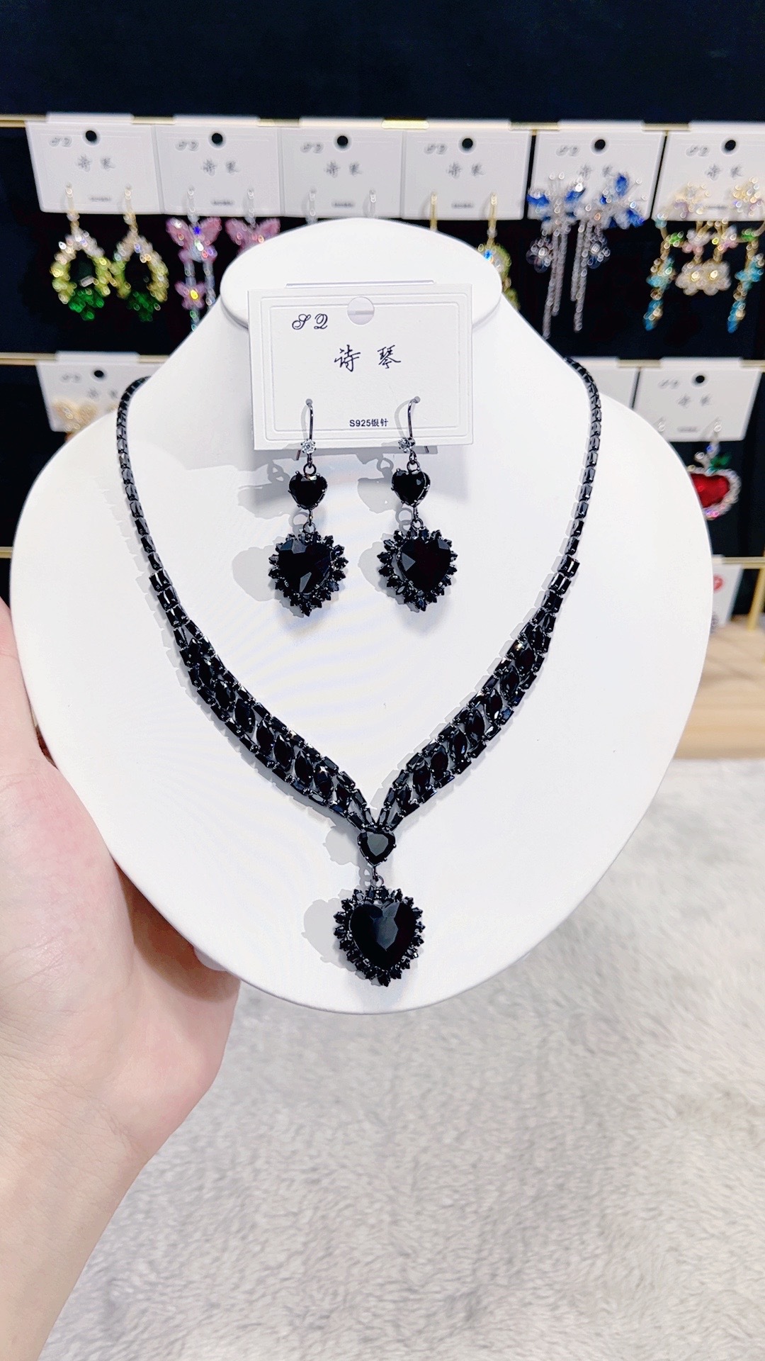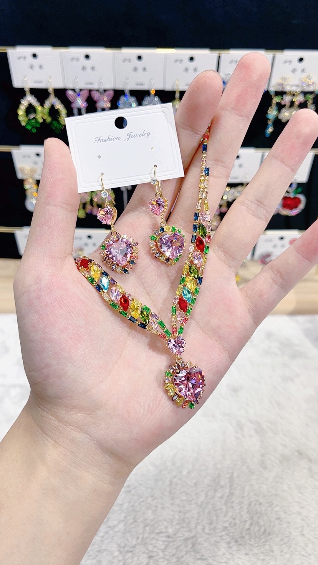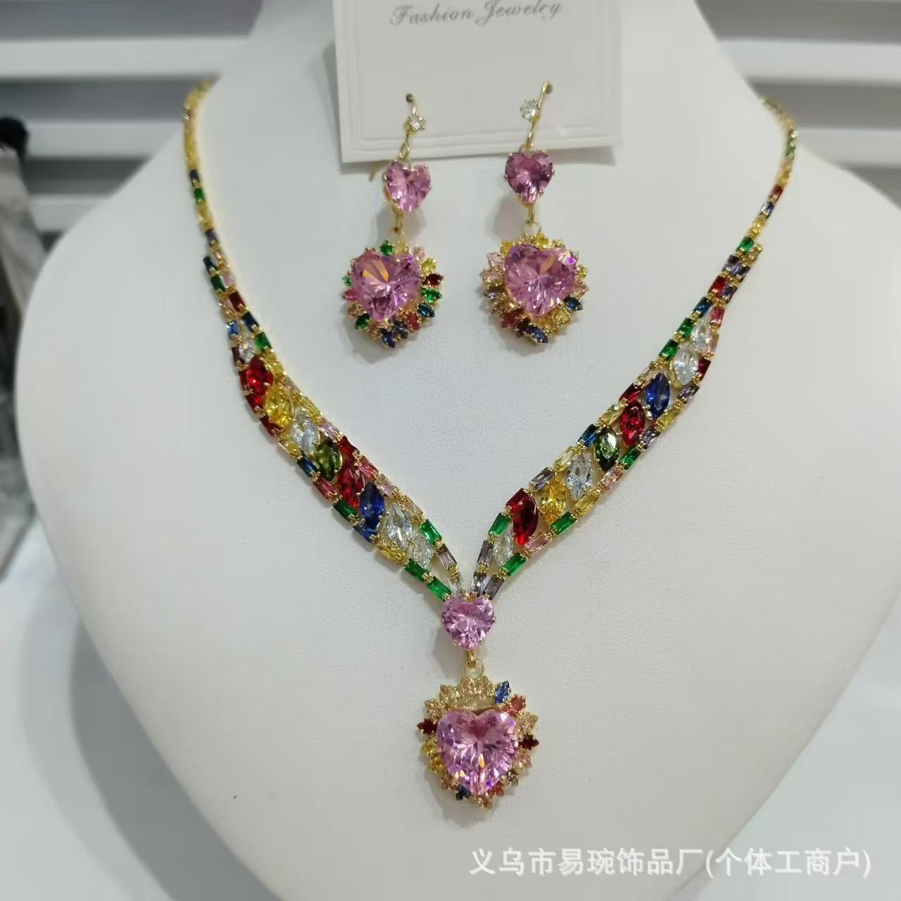 ファッショントレンドジルコン贅沢ネックレスイヤリング小桃心セットins生放送起爆着スカート着用