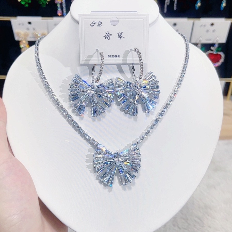 ファッショントレンドジルコン贅沢ネックレスイヤリング白蝶ネクタイセットins生放送起爆着スカート着用