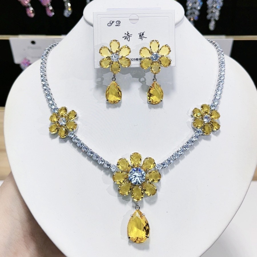 カラーファッショントレンドジルコン贅沢ネックレスイヤリングチューリップセットins生放送起爆着用スカート