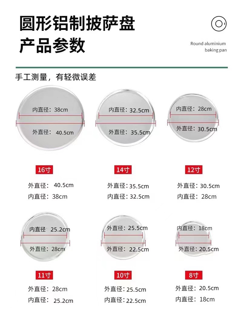 アルミニウム合金ピザ皿カバー、ユニバーサル7インチ、8インチ、9インチ、10inch 12inchインチのベーキングトレイカバー、オーブンベーキング用、高熱伝導性