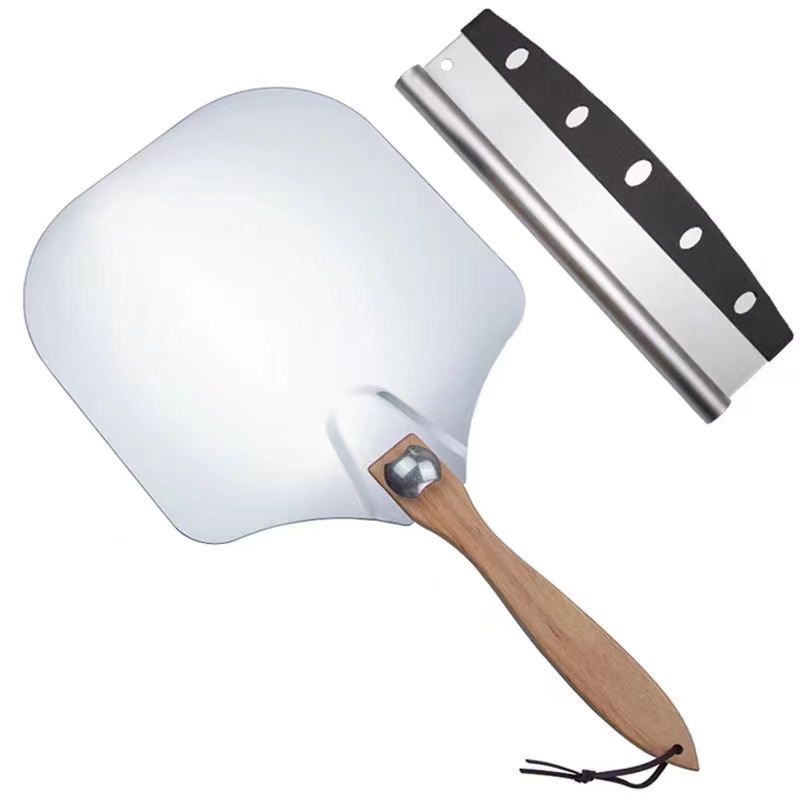 アルミ製ピザスパチュラ、木製ハンドル取り外し可能、カッター付き、ピザスパチュラ移動用、ピザツールセット、ホテル、レストラン、家庭用