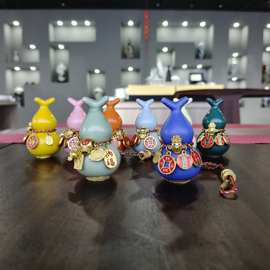 网红爆款鹿角小摆件 颜色釉七彩福禄葫芦挂件包包 陶瓷挂饰景德镇