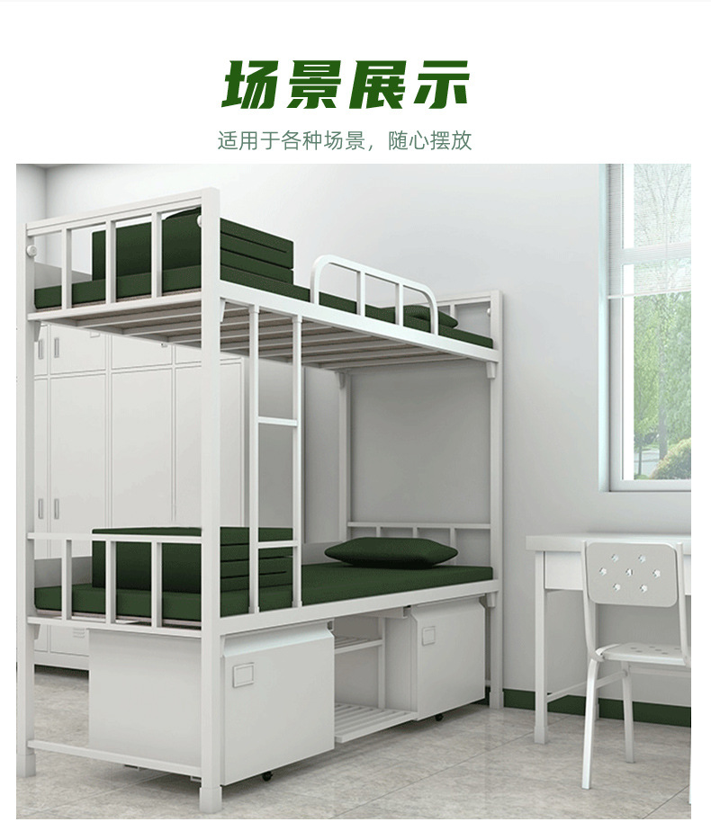 欧娜制式の営具は厚い二段ベッドの内務棚の上下に鉄ベッドを敷いてロッカーをロックしてテーブルと椅子の組み合わせを勉強します。